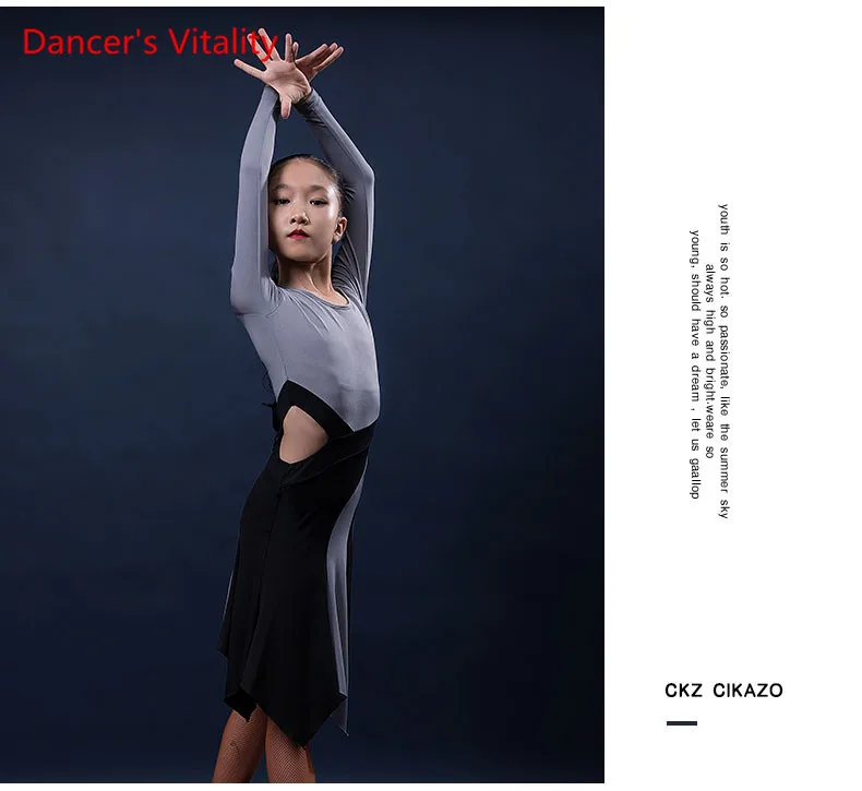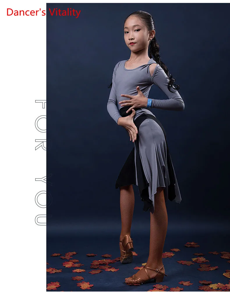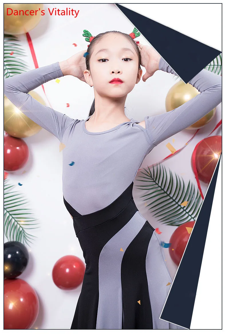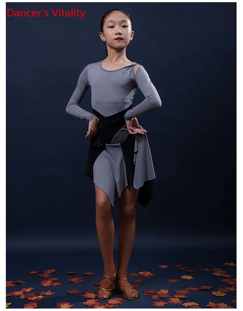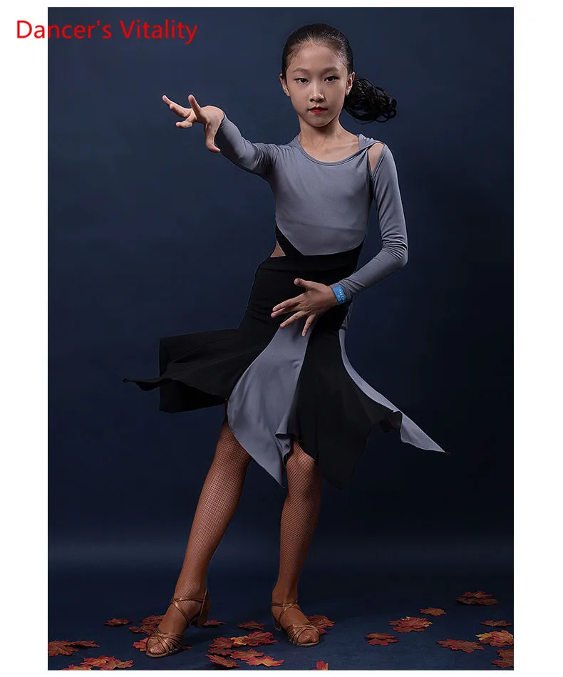 Одежда для латиноамериканских танцев; Детское платье для девочек; Сезон осень-зима; Детская одежда с длинными рукавами для соревнований по танцам