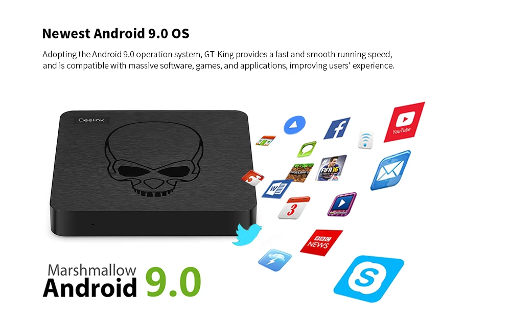 Адаптируя операционную систему Android 9,0, GT-King совместим с большим количеством программного обеспечения, игр и приложений, улучшая опыт пользователей.