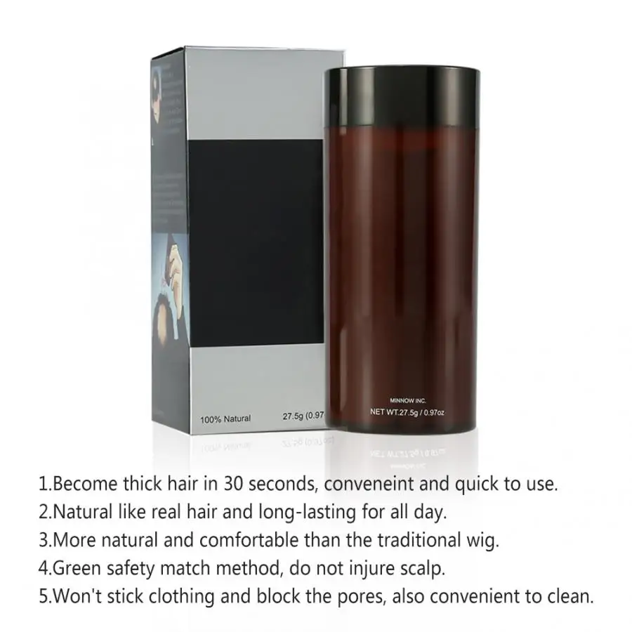 This product is made of natural plant extracts, which is safe and health to use without irritation. It can make the hair thicker quickly in 30 seconds, and its effect is natural like real hair and long-lasting for all day. What's more, it won't stick clothing and block the pores, also easy and convenient to clean. Such wonderful goods, just bring it home!
