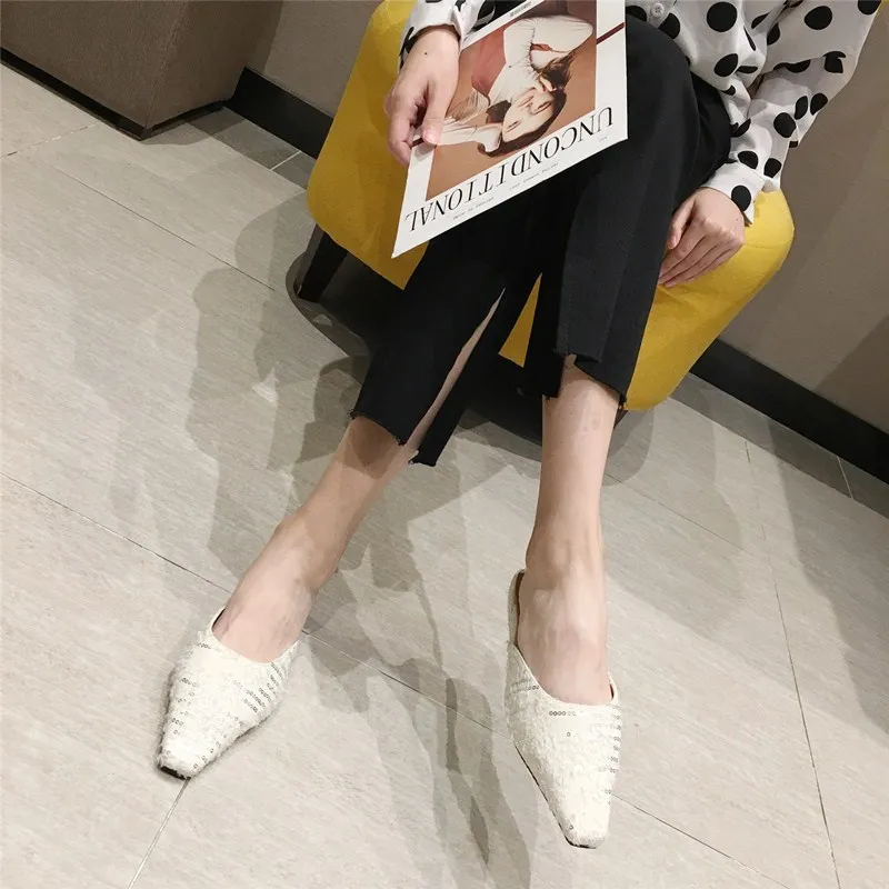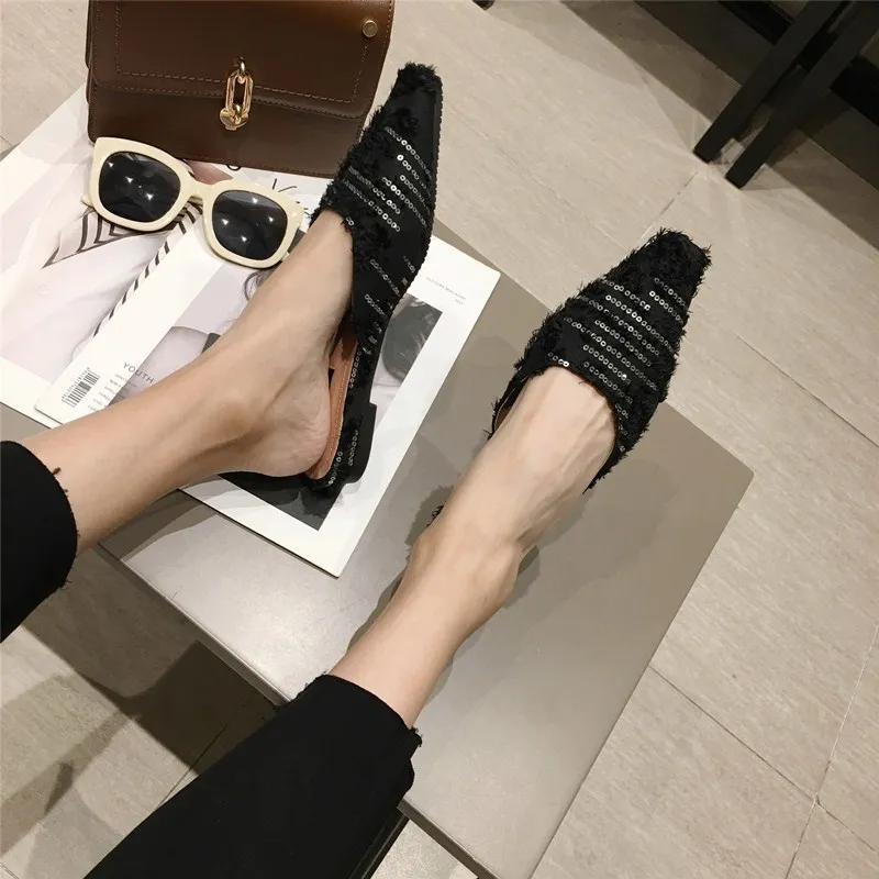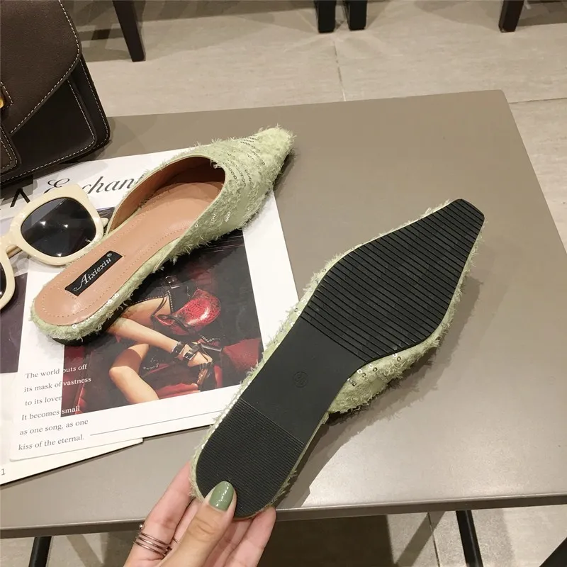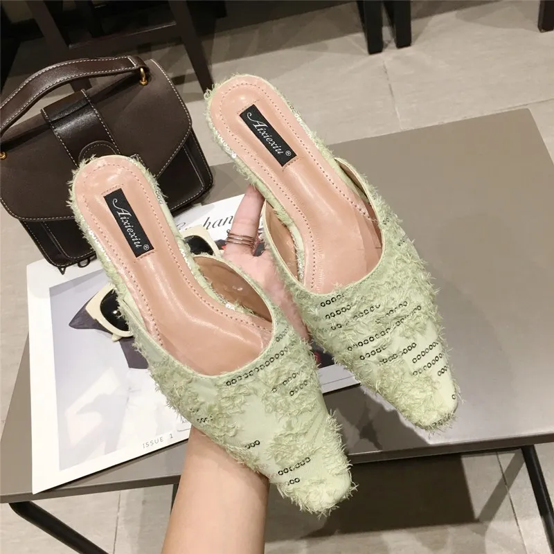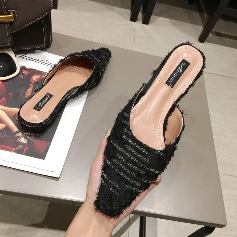 INS/2020 летние женские туфли без задника модные домашние тапочки с закрытым острым