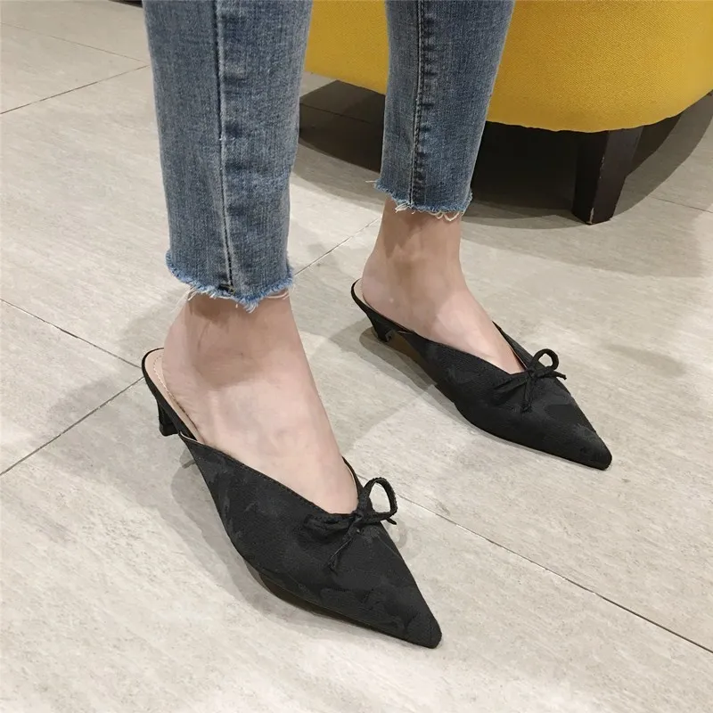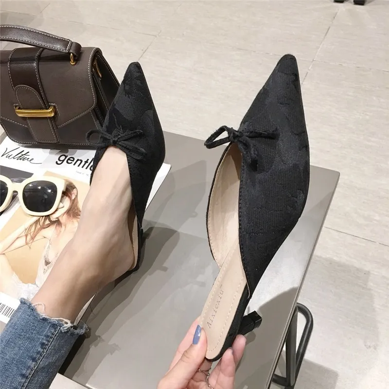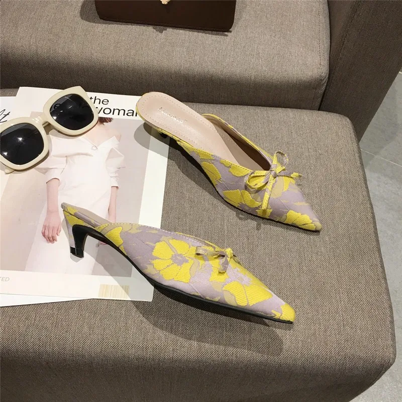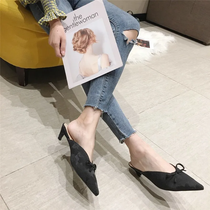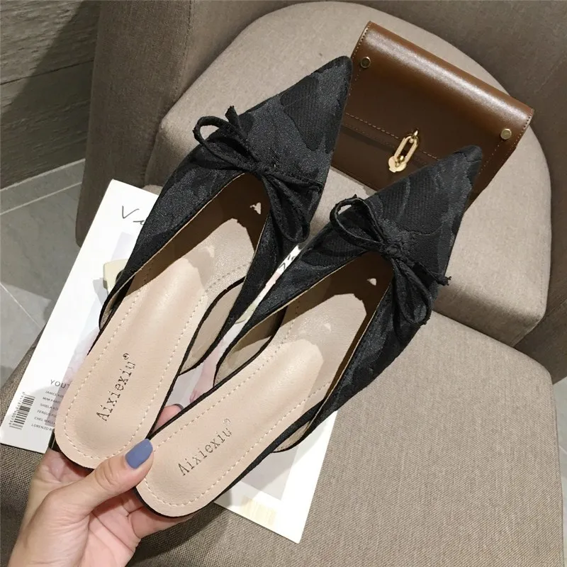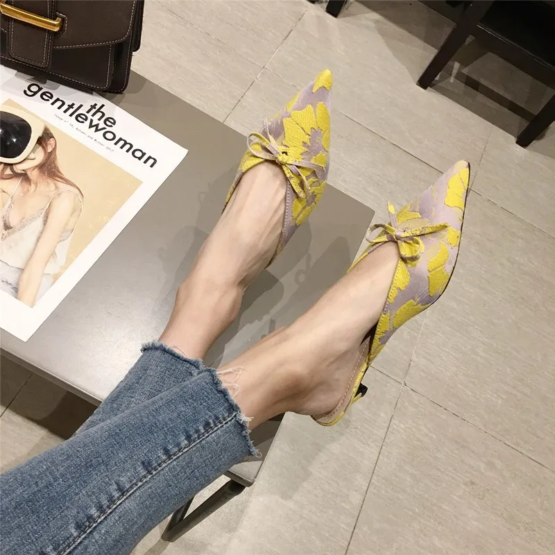 2020 летние женские туфли без задника модные шлепанцы с острым носком модельные