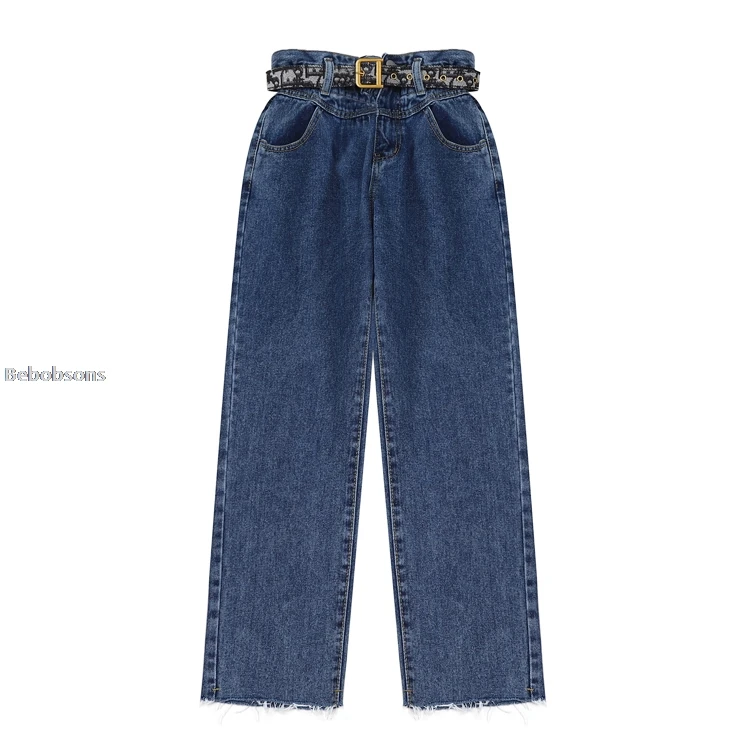 Винтажные прямые женские джинсы с манжетами высокой талией в Корейском стиле