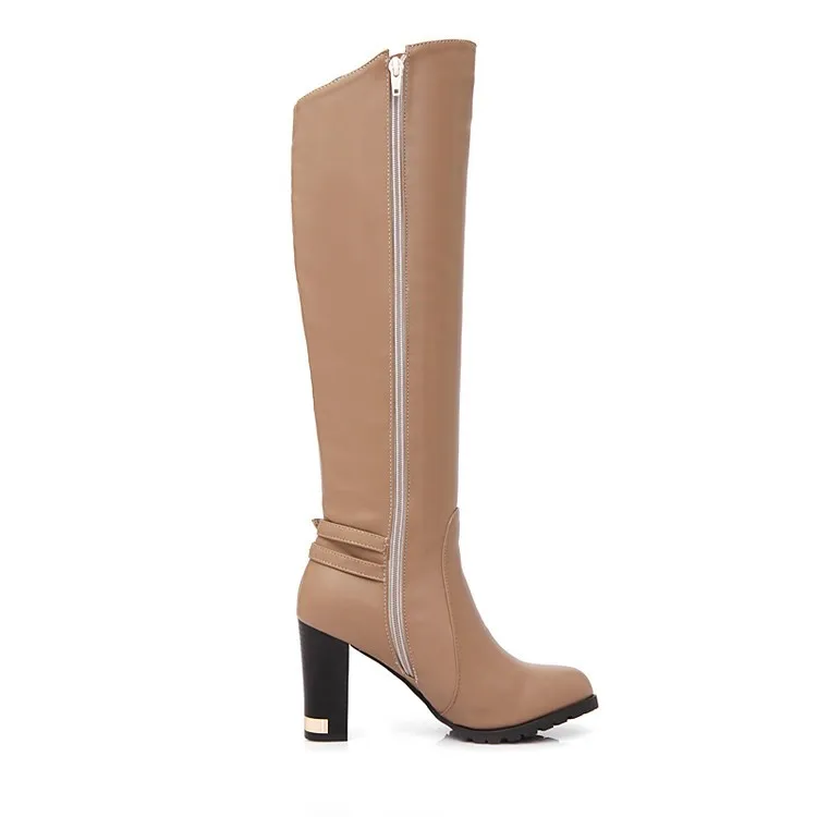 Женские высокие мотоциклетные сапоги черные или персиковые до колена на высоком