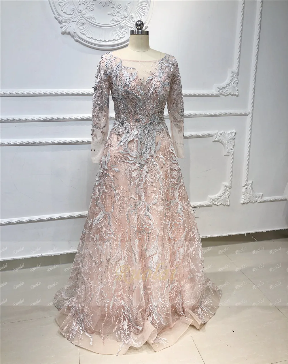 OEV4307 розовое роскошное вечернее платье с длинным рукавом и блестящим бисером, платье для выпускного вечера 2020, вечерние платья