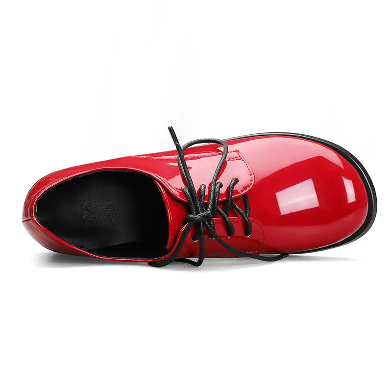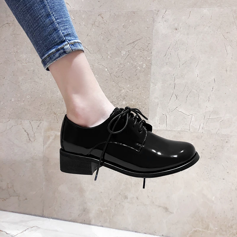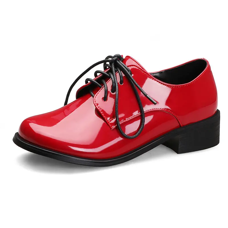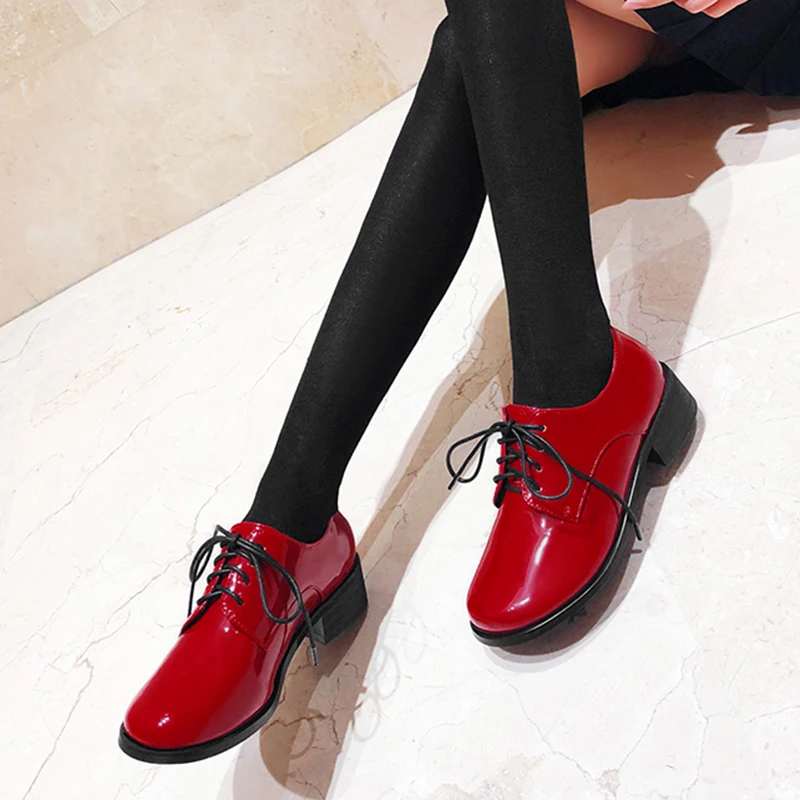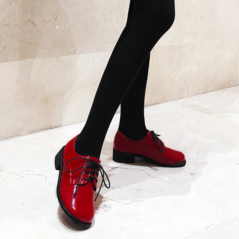Lloprost ke/Весенняя женская обувь из лакированной искусственной кожи на массивном каблуке средней высоты со шнуровкой повседневные женские туфли-лодочки для отдыха на каблуке красного, черного, синего цвета