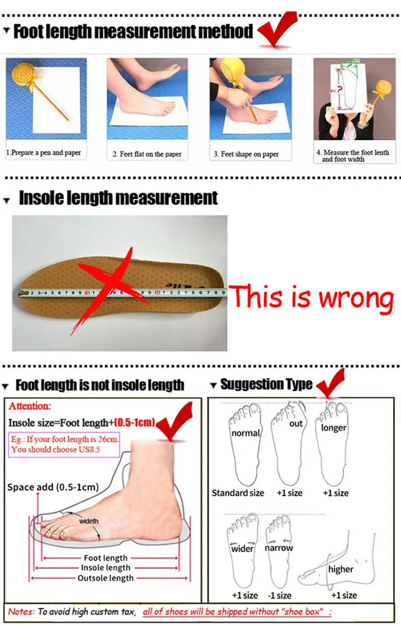 1.100% бренд 2. Поскольку измерения выполнены вручную, допускается погрешность в 0-2 см 3. Упаковка: новая обувь без коробки 4. Пожалуйста, выберите размер в соответствии с длиной стопы (Не выбирайте размер в соответствии с размером вашей страны!) 5. (Не фактический размер в США) конвертируется только из китайских размеров в соответствии с нашими правилами. На обуви указаны соответствующий размер CN или длина стопы. 6. Размер США 10 (27 см). Эта длина стельки или подошвы не соответствует 27 см, только Длина ступни. 7. Из-за различных углов экрана и угла съемки, может немного отличаться от реального цвета Рекомендуем вам приобрести обувь большего размера , Который вы обычно носите 6,5 ярдов рекомендуется купить 7 ярдов