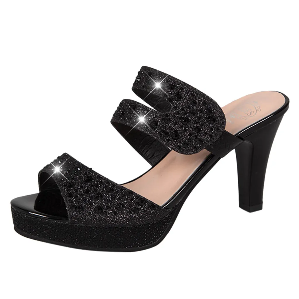 Женские модные шлепанцы на высоком каблуке; Повседневная обувь на толстой подошве с открытым носком