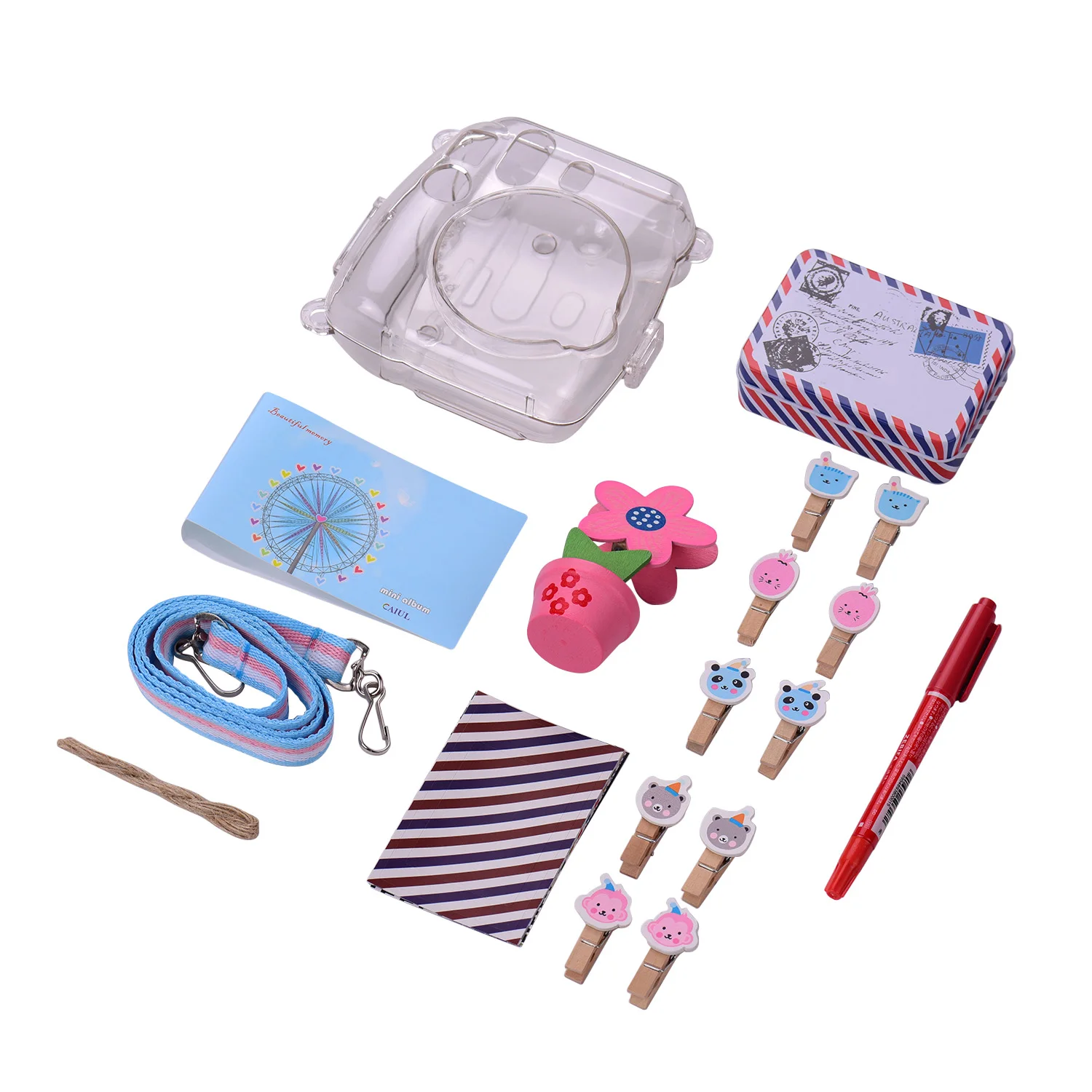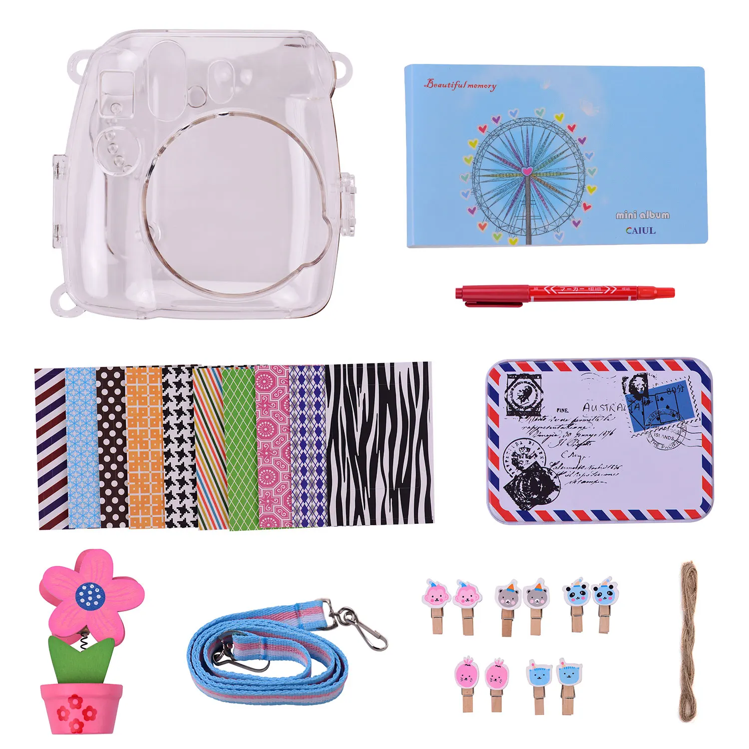 Набор аксессуаров для мгновенной камеры 8 в 1 для Fujifilm Instax Mini 8/8 +/8s/9, включая чехол для камеры/коробку для фотографий/альбом/держатель для фотографий в форме цветка/зажимы для фотографий/подвесная веревка/Пленка пограничная наклейка/ручка