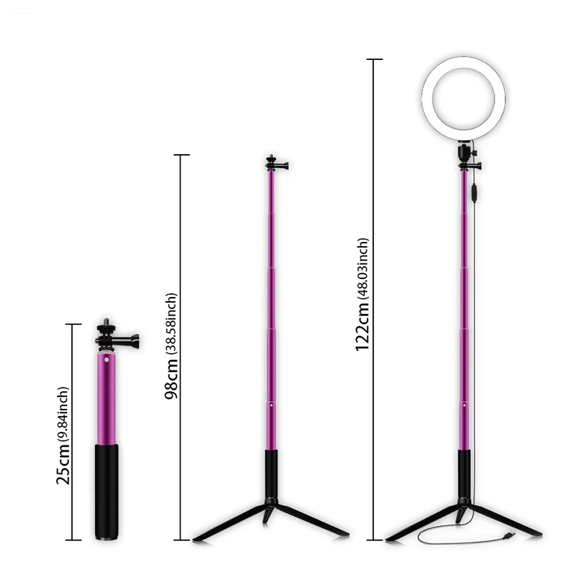 Кольцо для заполнения светильник разработан с складной штатив, который может быть отрегулировано свою высоту между 30,5 см ~ 95,5 см в соответствии с реальной ситуации. Также удобно хранить, когда он не используется.