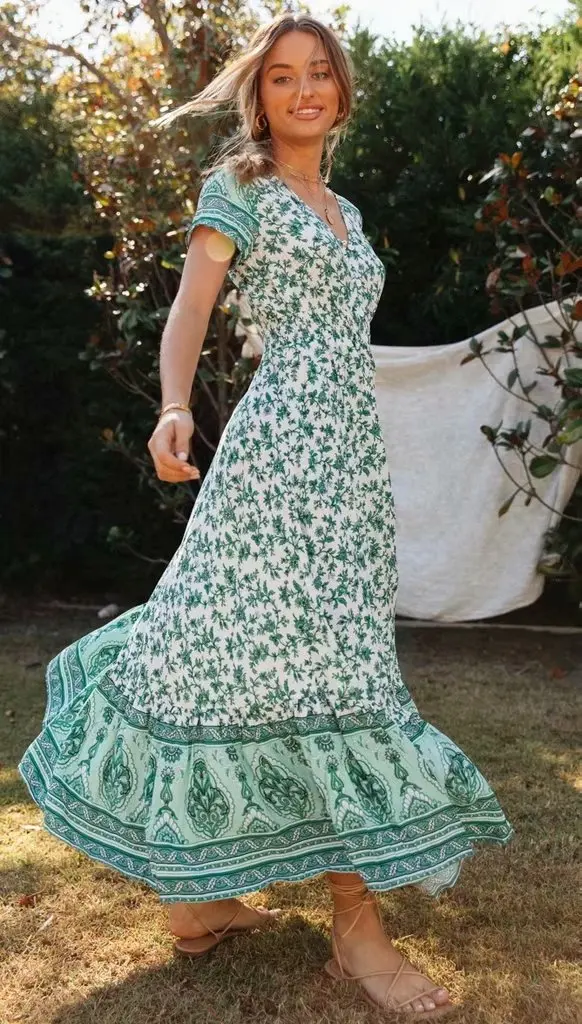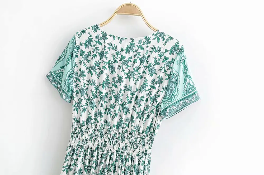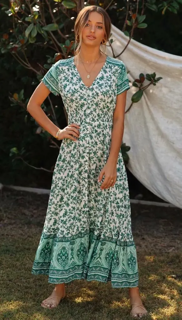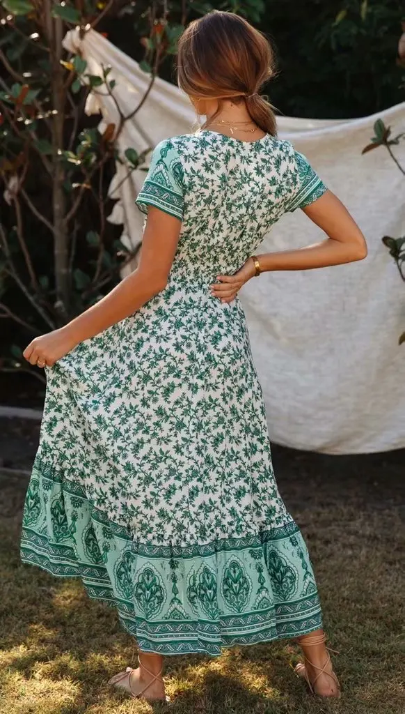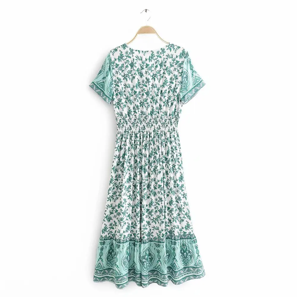 Модное Новое Платье с принтом сексуальное с v-образным вырезом с эластичной талией однобортное длинное платье