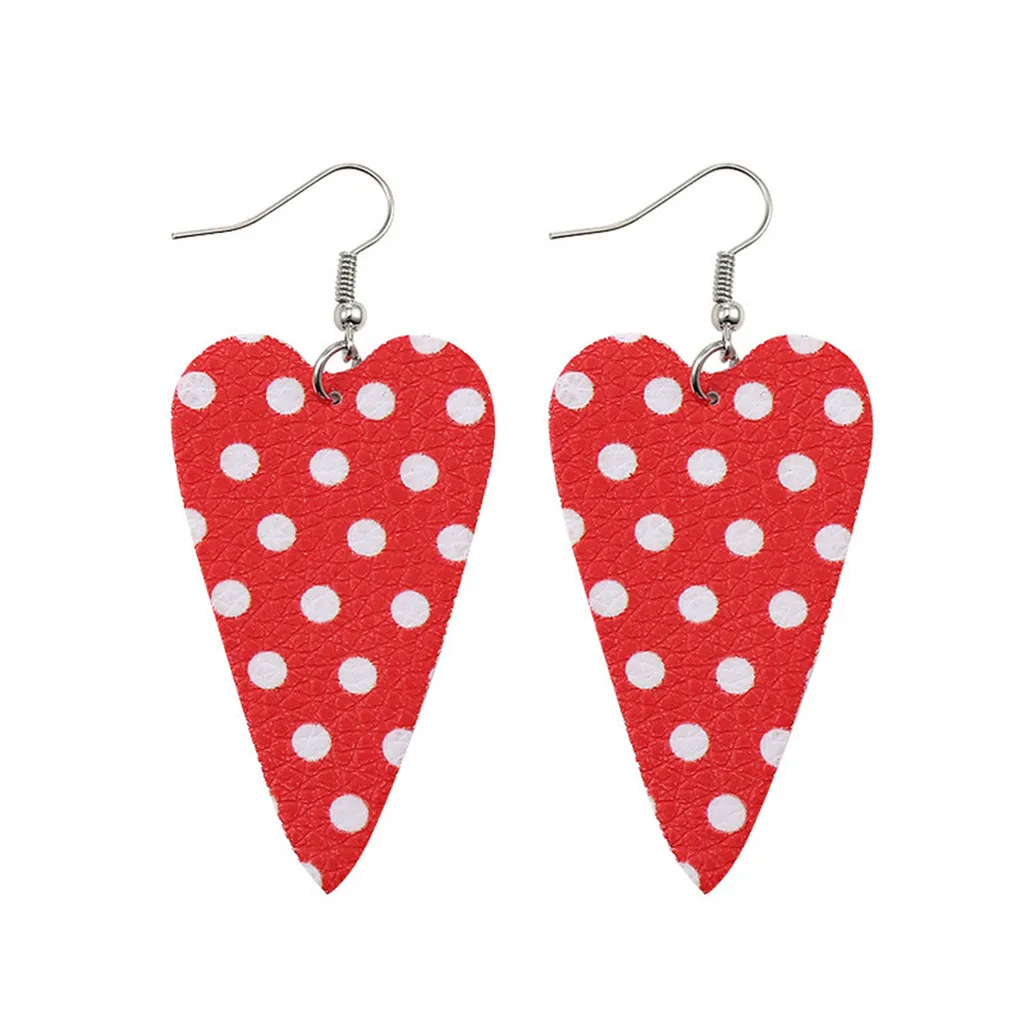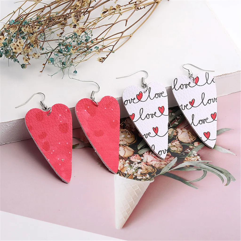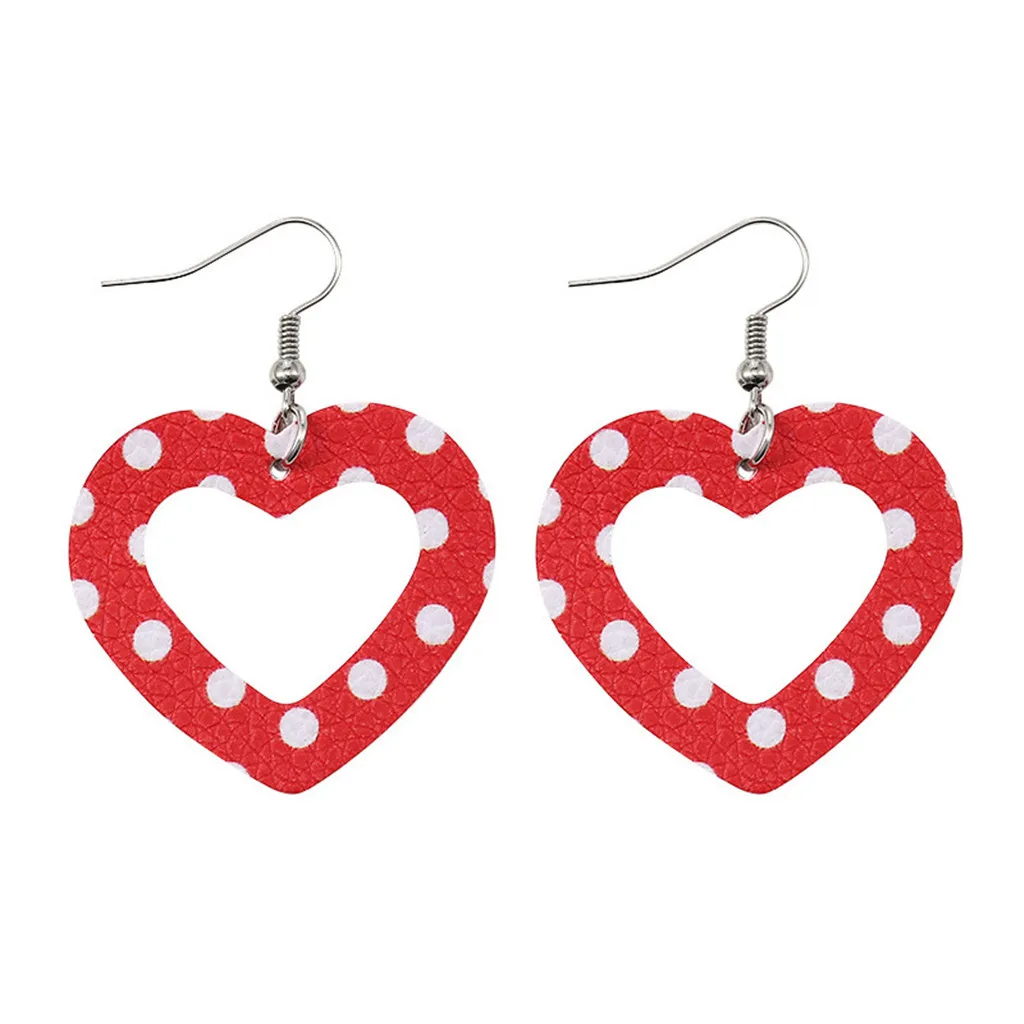 Двухсторонние кожаные серьги с полым сердечком, новогодние кожаные серьги