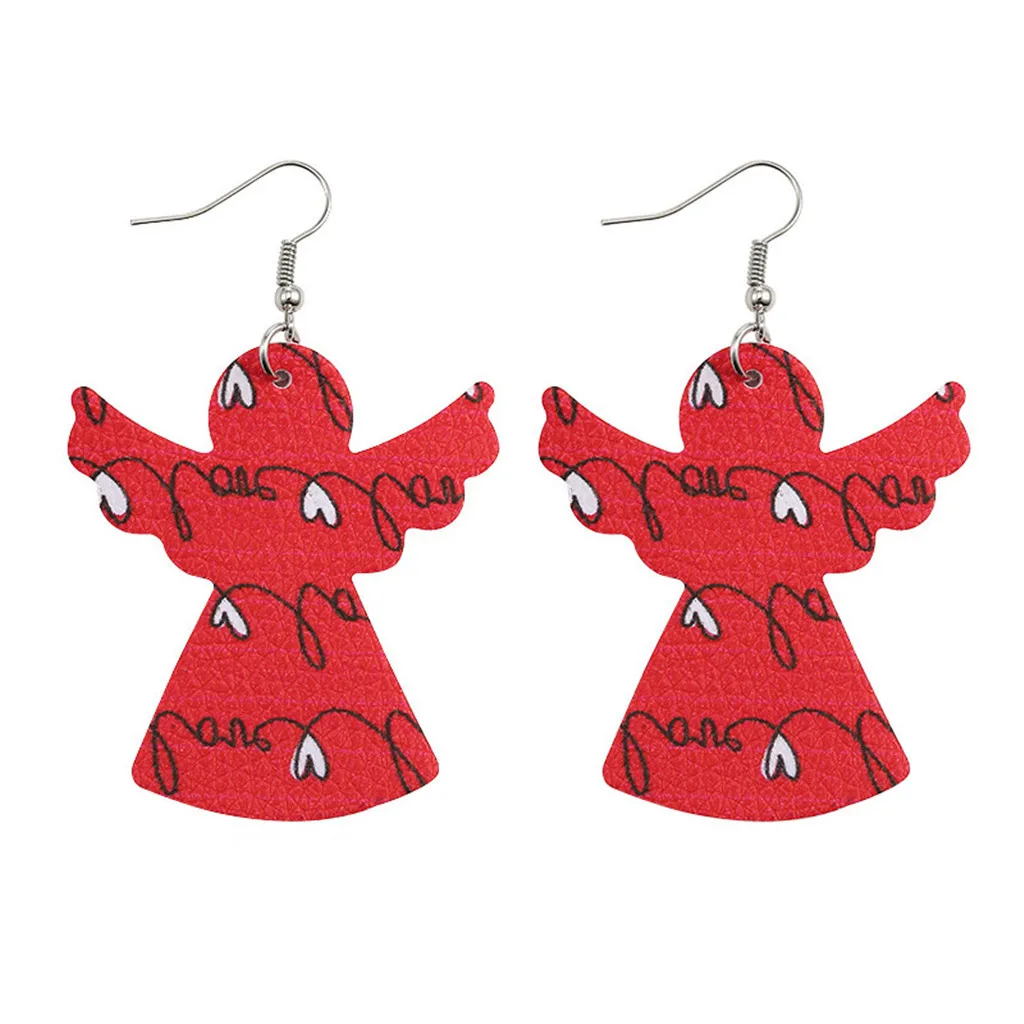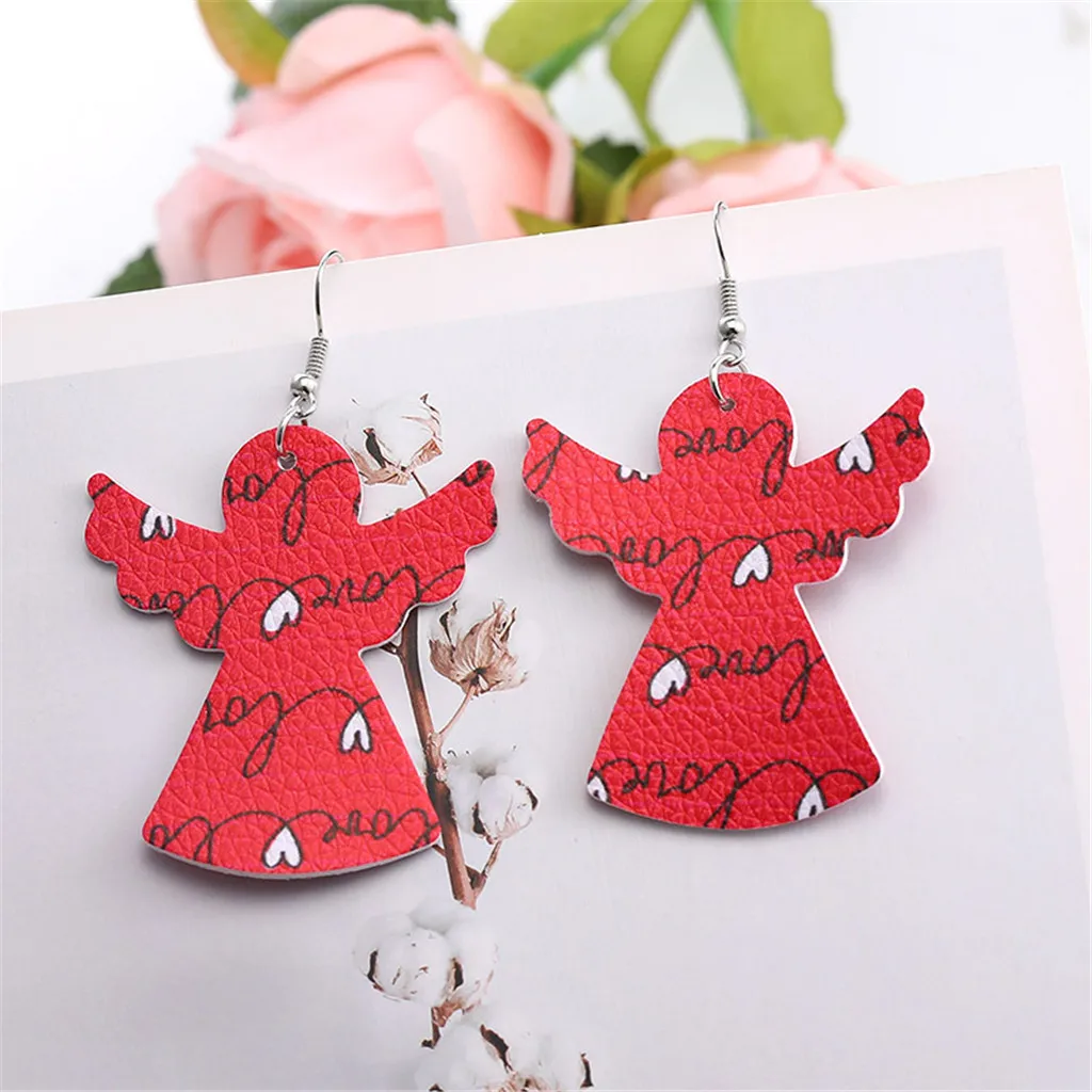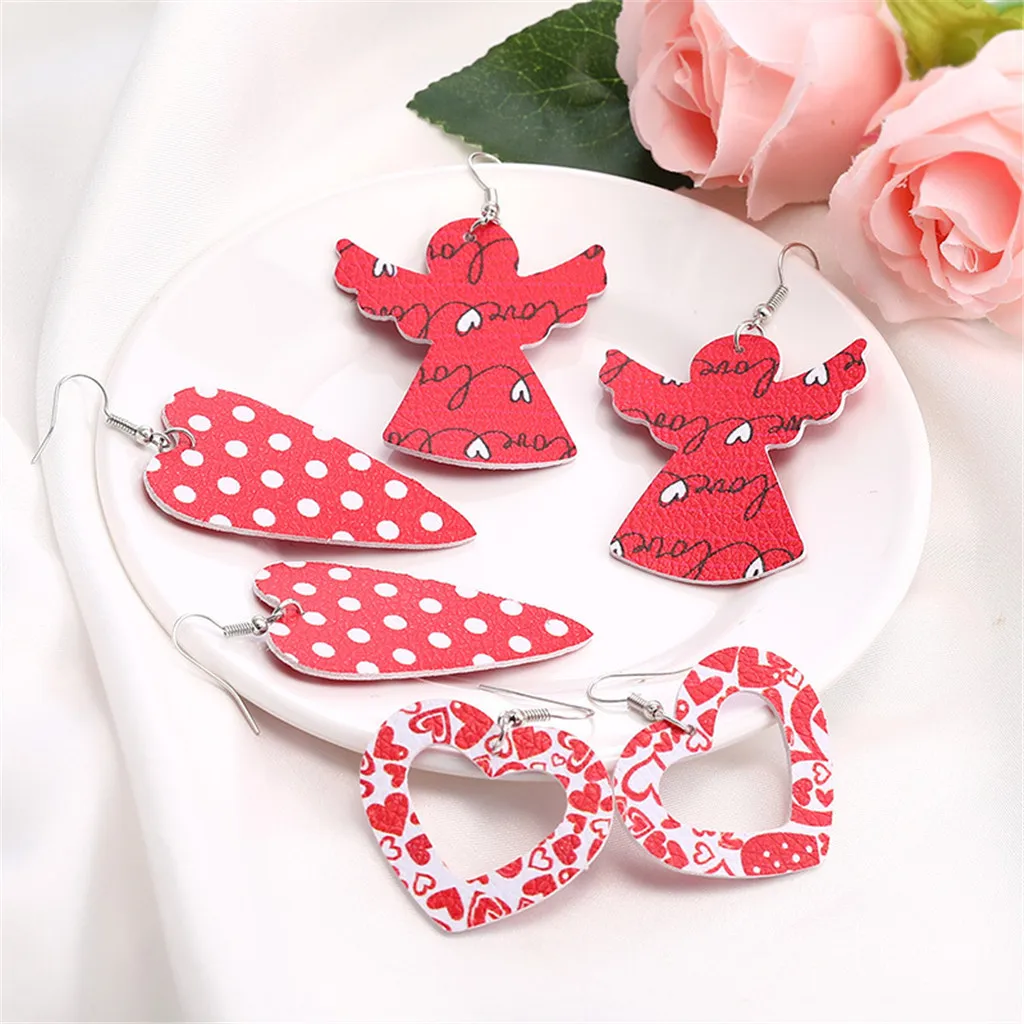 Двухсторонние кожаные серьги с полым сердечком, новогодние кожаные серьги