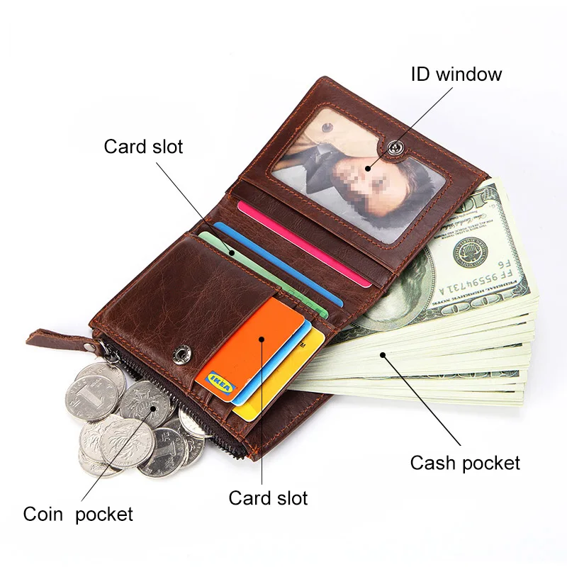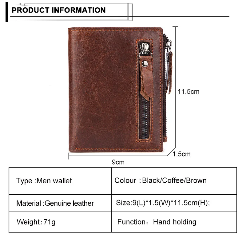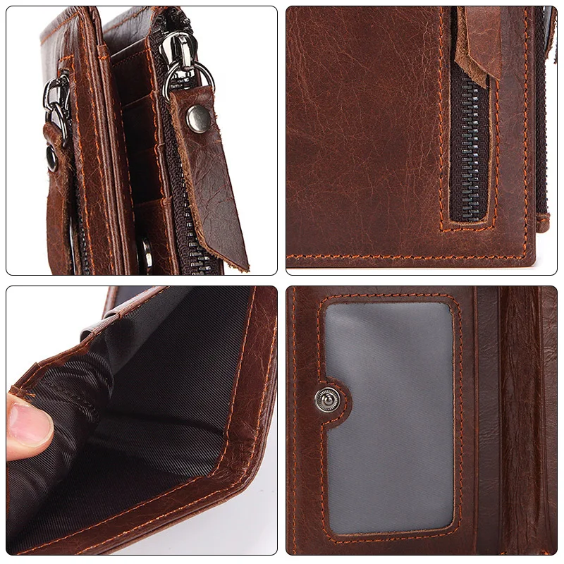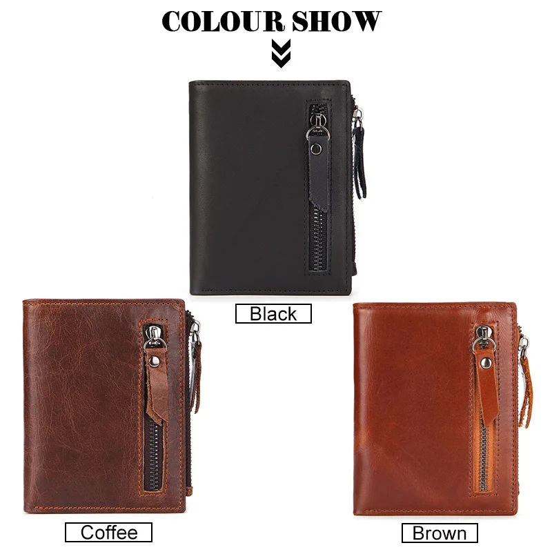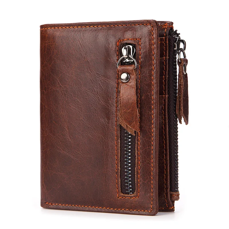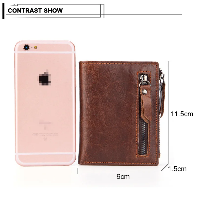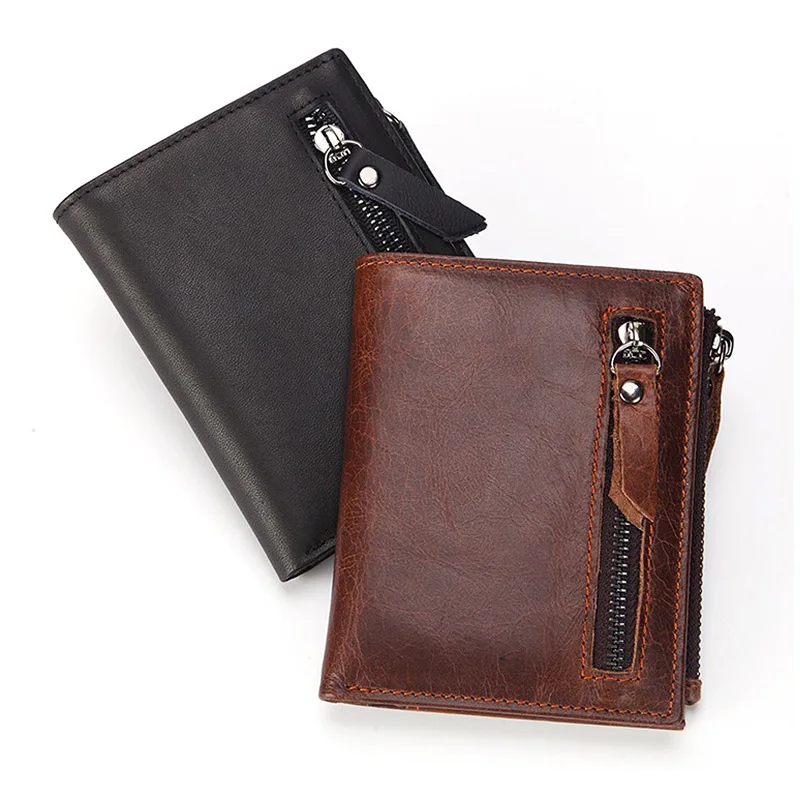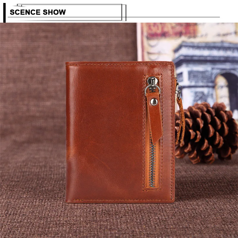 Винтажный Мужской короткий кошелек из натуральной кожи с отделением для карт и отделением для карт, деловая сумка-клатч на молнии, портмоне для путешествий