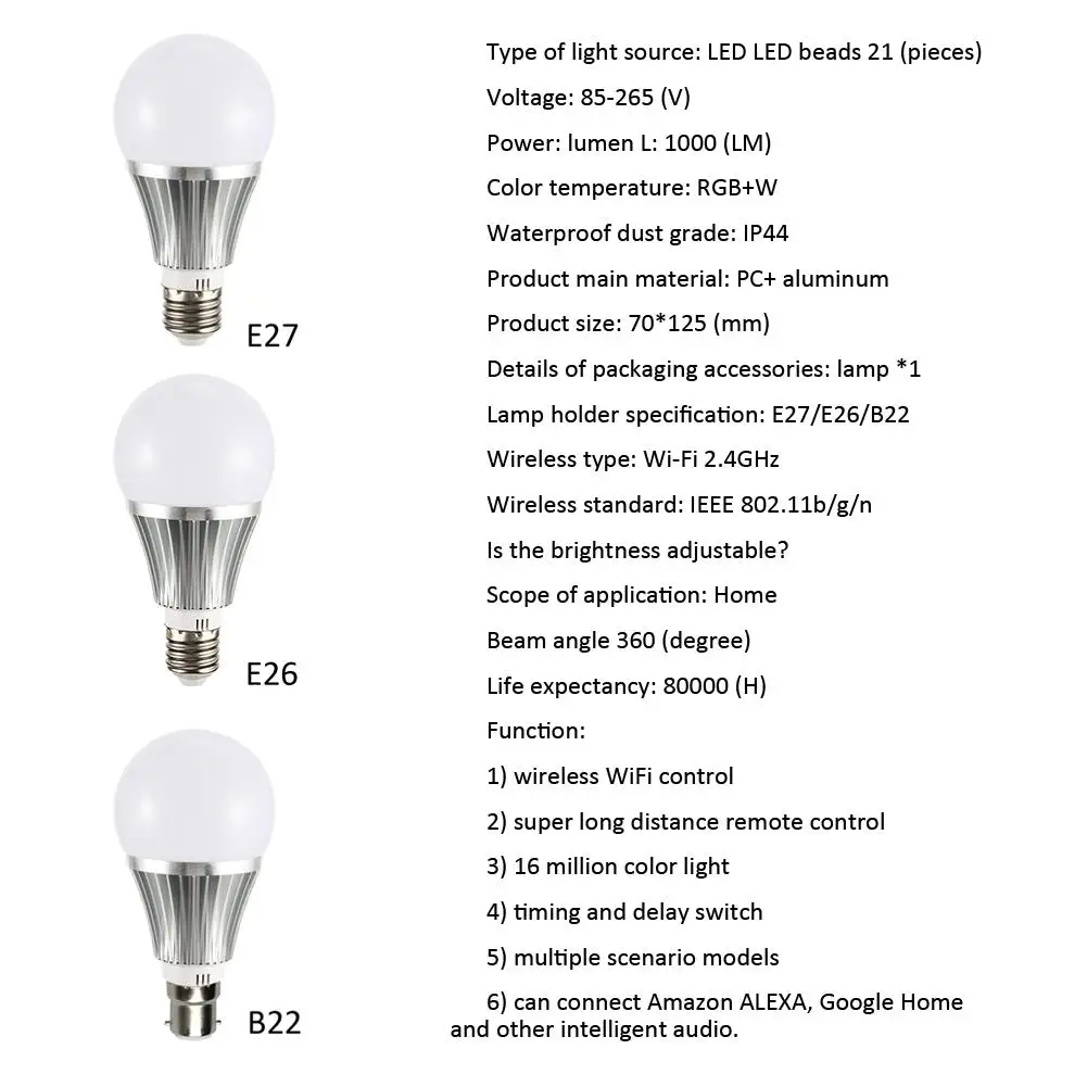 Voltage: 85-265 (V)6) Connect to Amazon ALEXA, Google Home and other smart audio