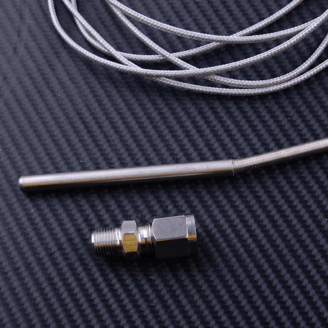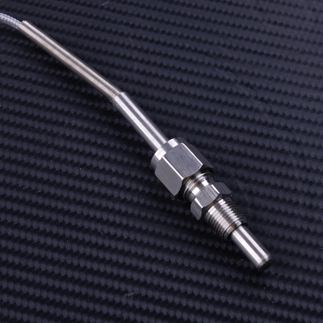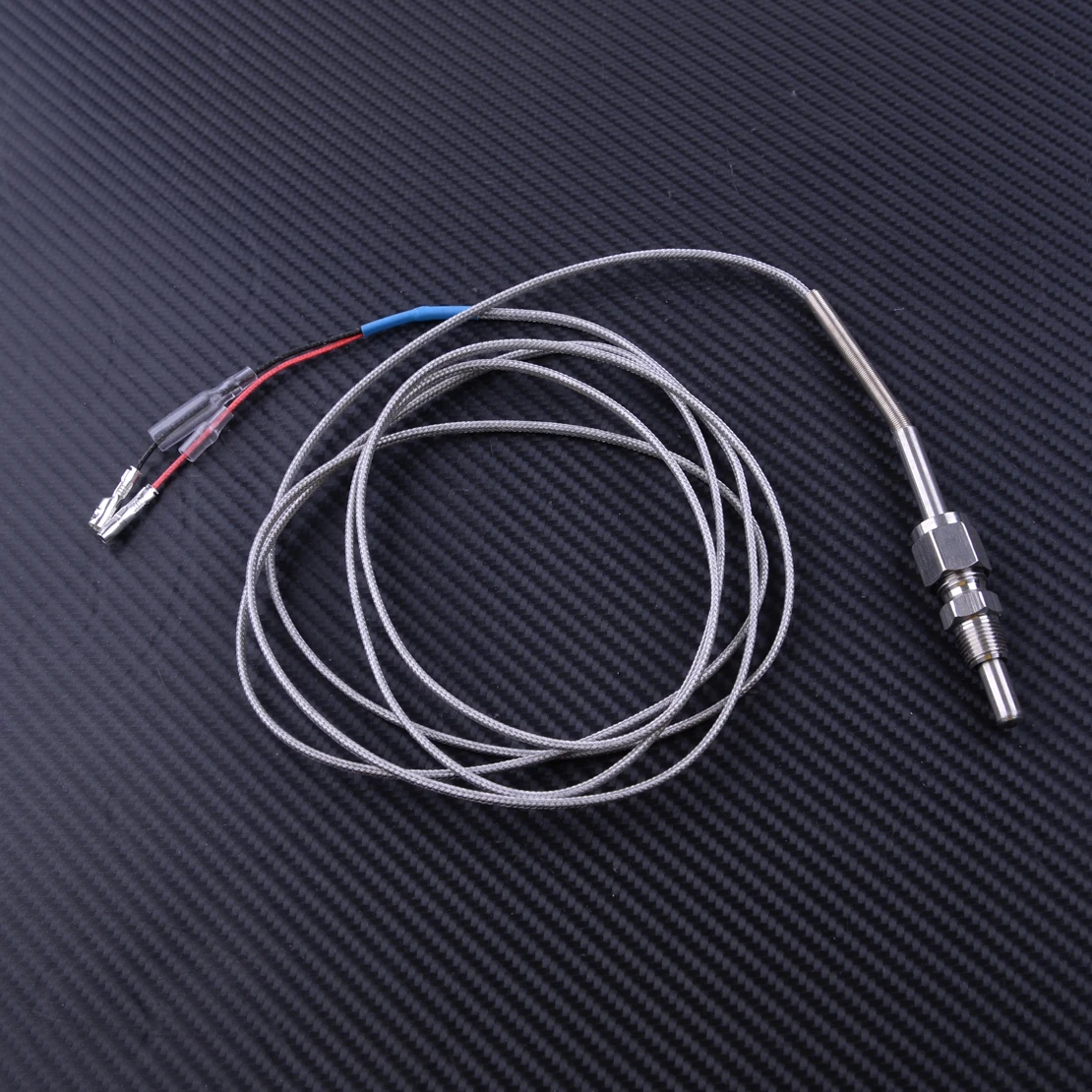 4) датчик температуры выхлопных газов имеет 6 'стальной плетеный провод, который крепится к зонду с мужскими и женскими электрическими соединителями на конце для легкого подключения к проводке датчика.