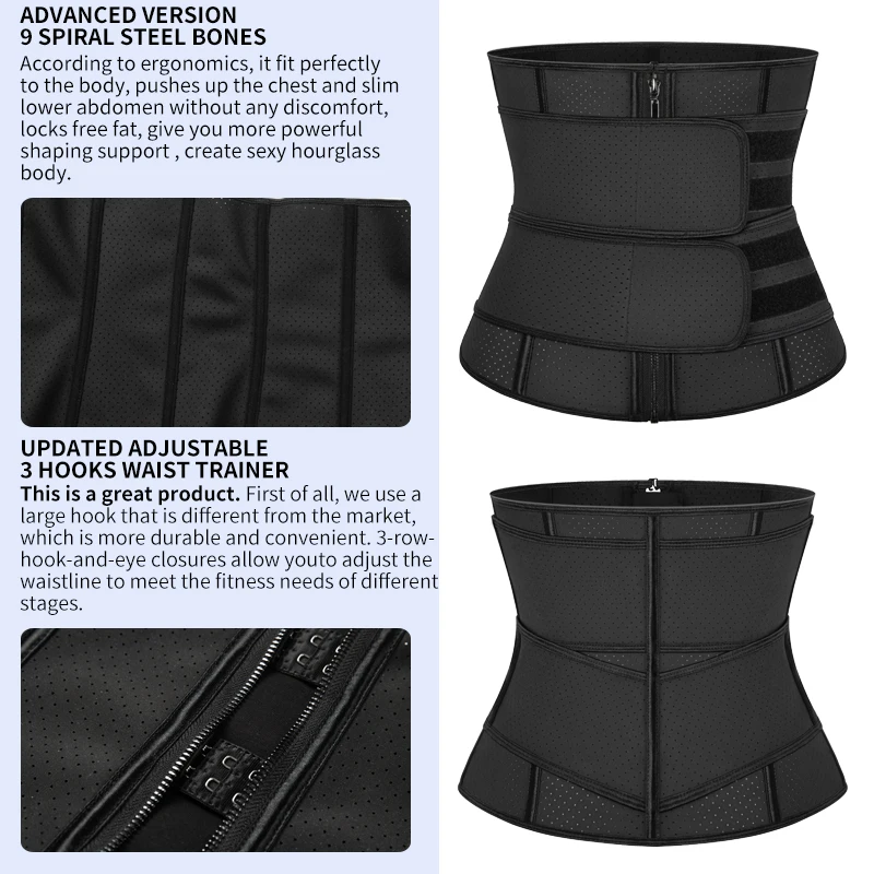 Встроенный 9 стальных костей, поддерживающий эффект формирования является мощным и эффективным. Отличный триммер для талии + тренажер для талии. Это дает вам совершенно другое ощущение по сравнению со старыми узкими.