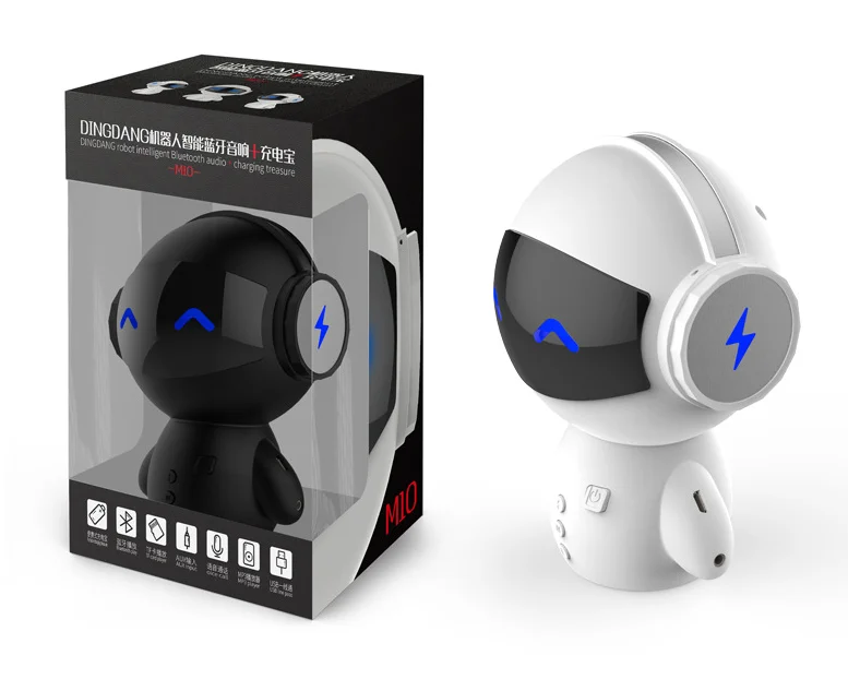 Отличительные черты товара: Портативный Беспроводной робот подарок Динамик небольшого размера и светильник вес, удобный для переноски. Новые технологии возвращают красоту басового звука изысканный внешний вид, удобное качество беспроводного подключения на ваш мобильный телефон. Он имеет многофункциональный и умный, имеет более длительный срок службы. Характеристики 1. Выходная мощность: 5 Вт (RSM) 2. Динамик: 53 мм внутри магнитного левитационного динамика 3. Частотная характеристика: 150 Гц-20 кГц 4. Версия Bluetooth: 3,0 + 5. Чувствительность микрофона: -38 дБ 6. Искажение: <1% -2% 7. Расстояние приема: 15-20 м 8. Напряжение при зарядке: DV 4,8-5В 9В. Емкость аккумулятора: 2200ма 10. Время работы в режиме воспроизведения музыки: 12 часов (максимальный объем) 11. Время работы в режиме ожидания: 240 часов 12. Быстрая зарядка: 4-5 часов посылка включает в себя: 1 беспроводной динамик 1 кабель для зарядки