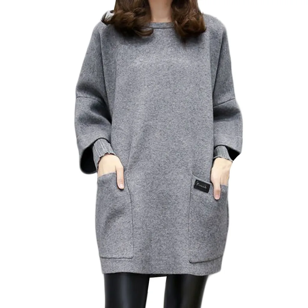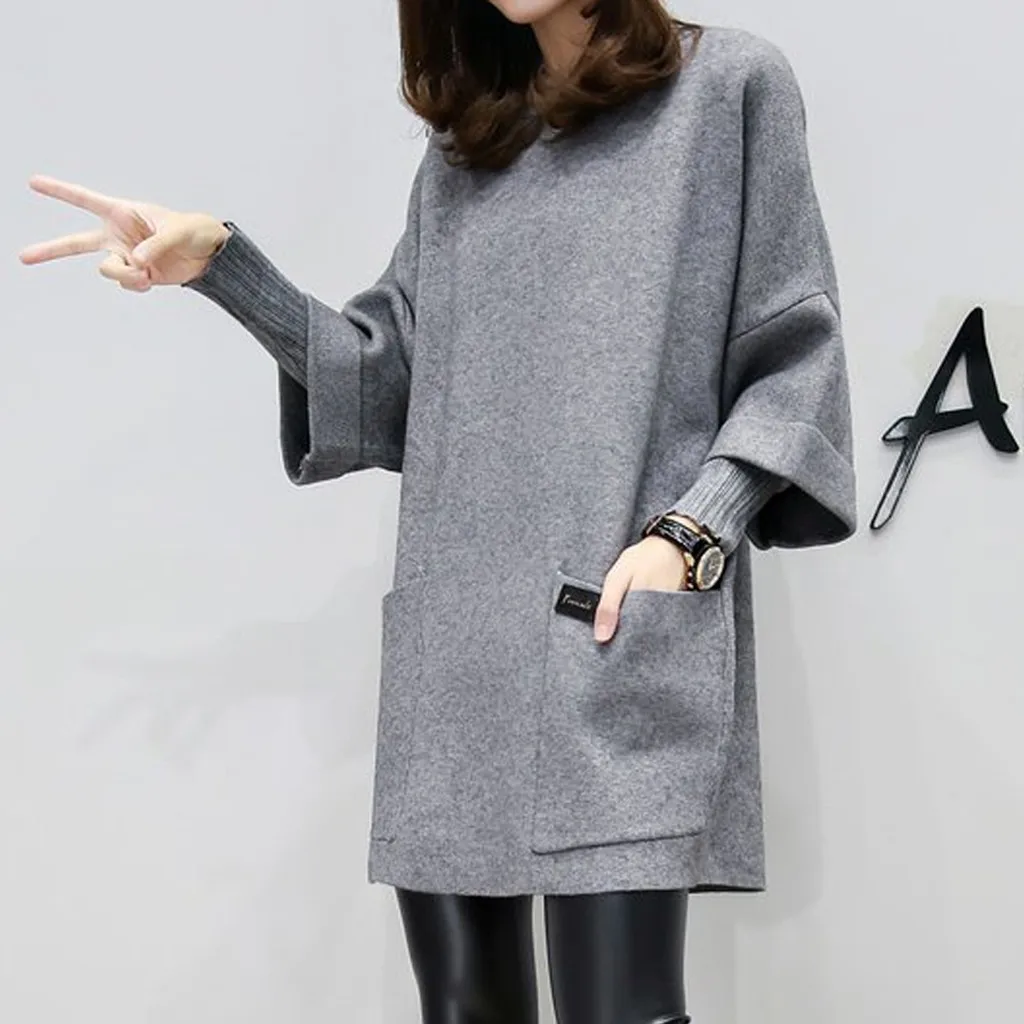 Женское осеннее модное платье из двух частей с круглым вырезом и длинным рукавом, однотонное платье с карманами
