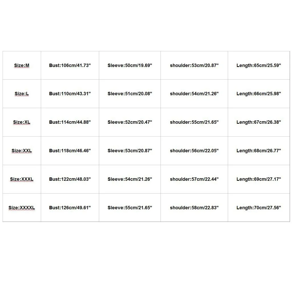 | XXXXL | 126 см/49,61'' | 55 см/21,65'' | 58 см/22,83'' | 70 см/27,56'' |