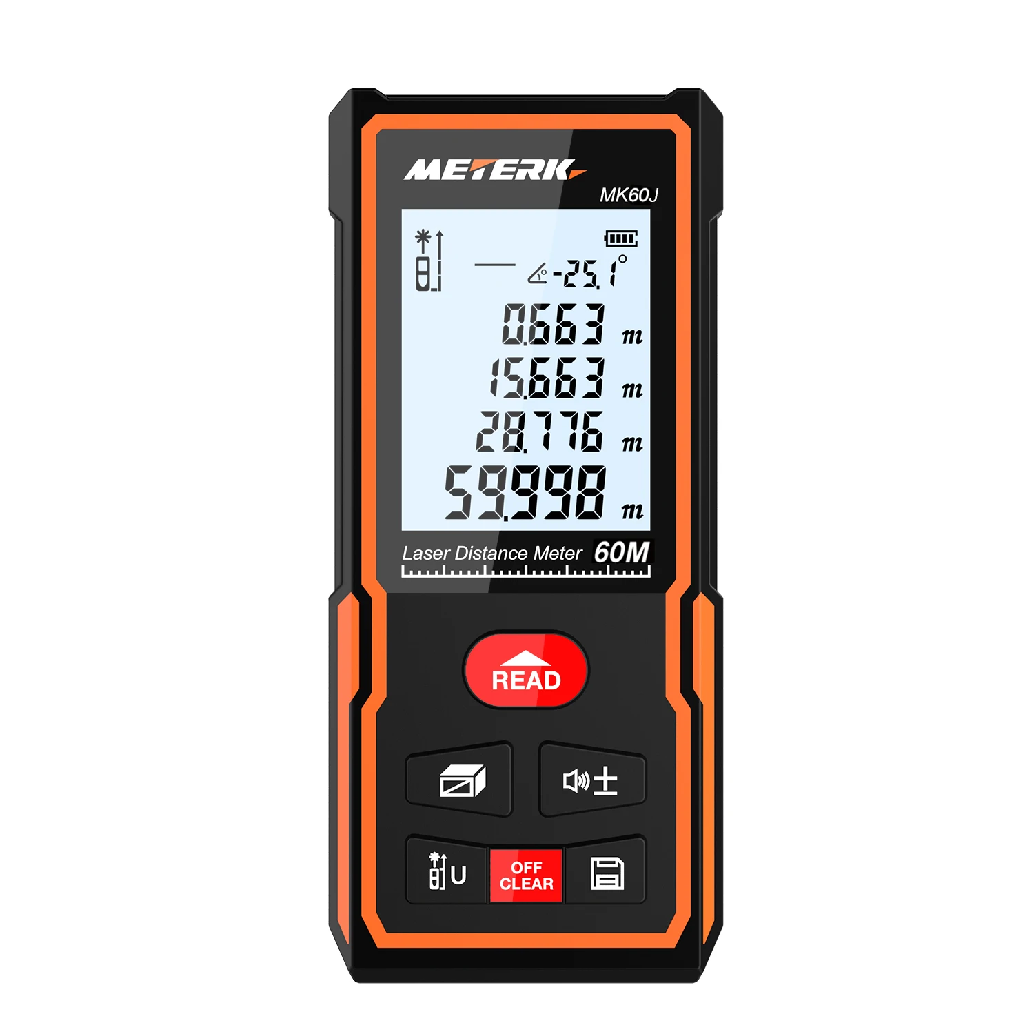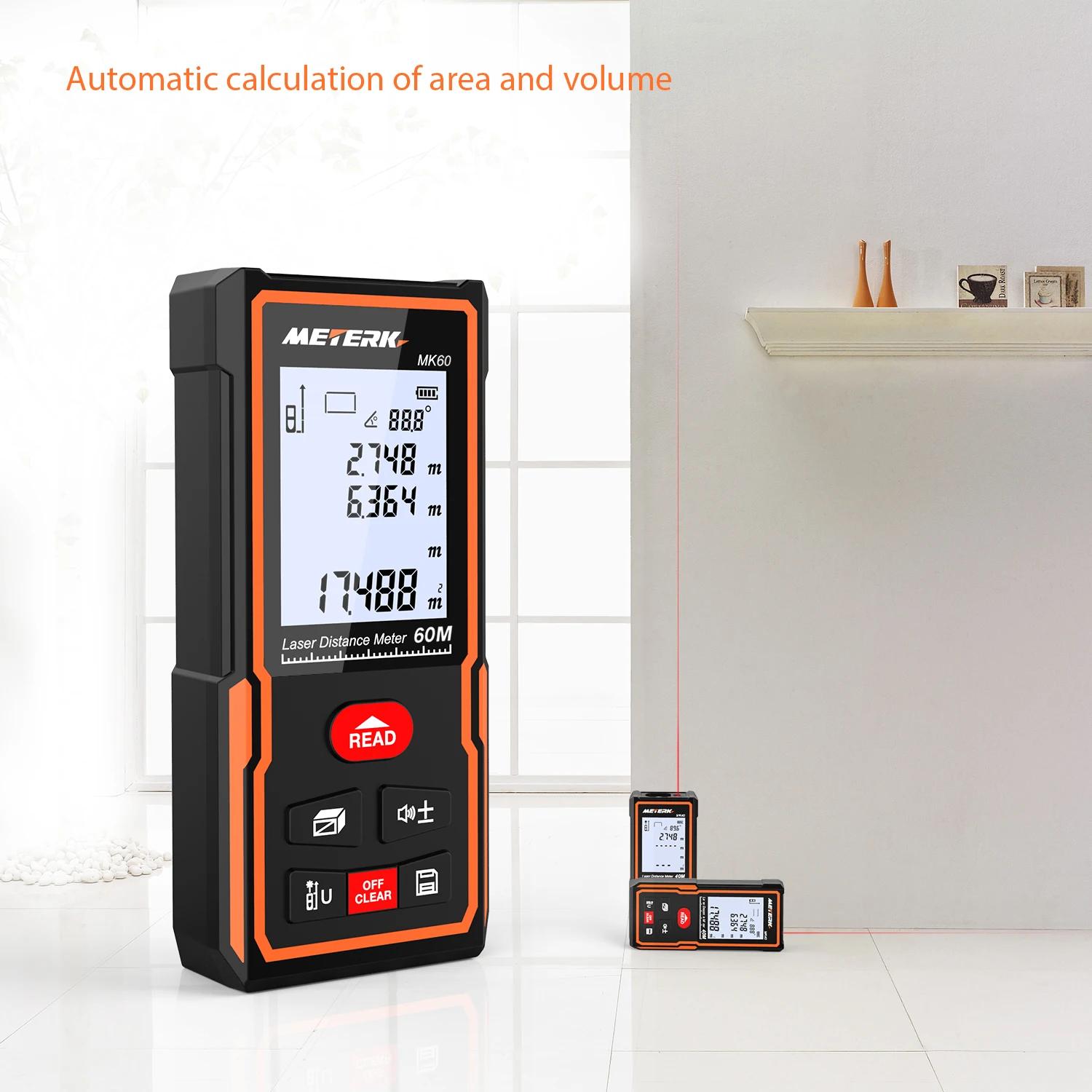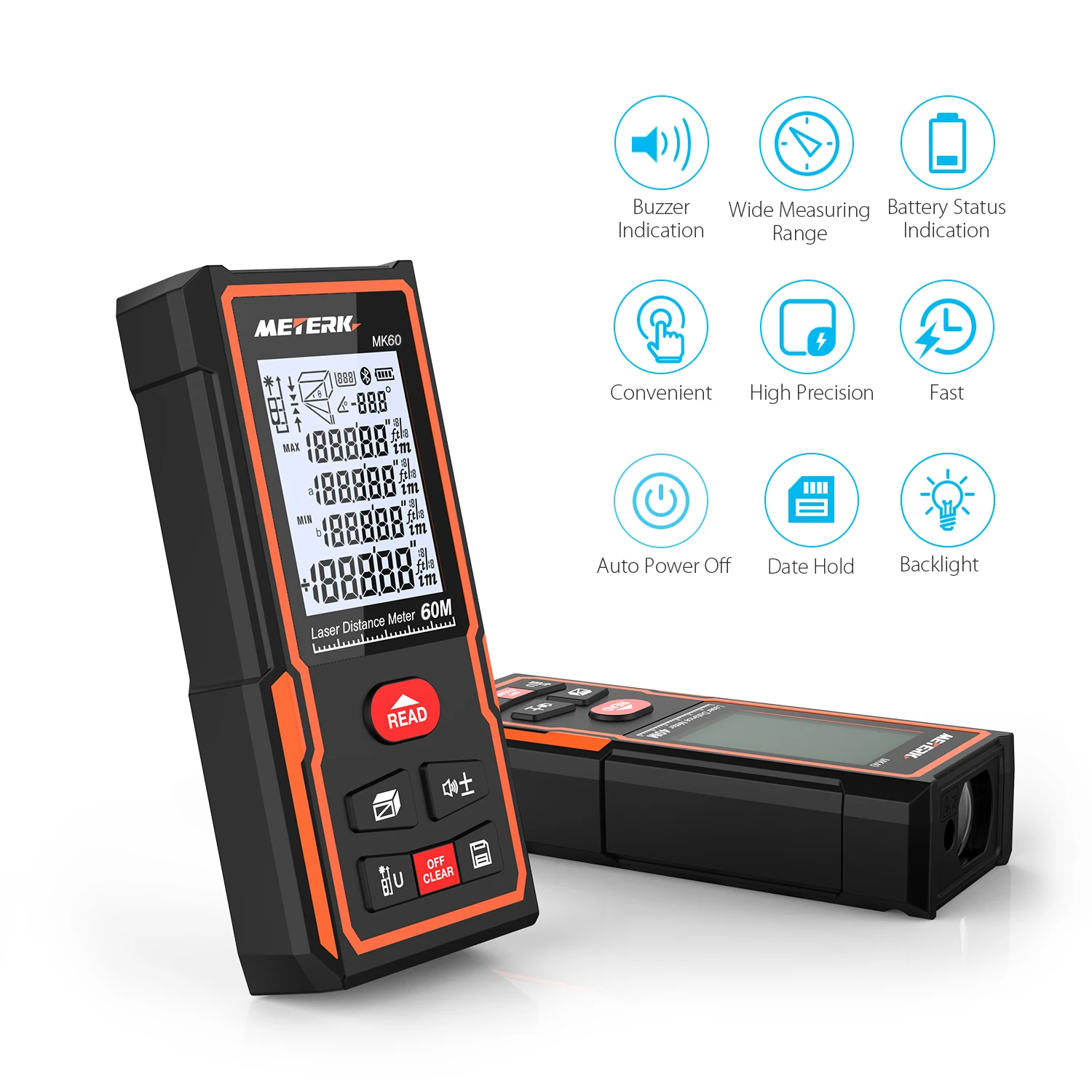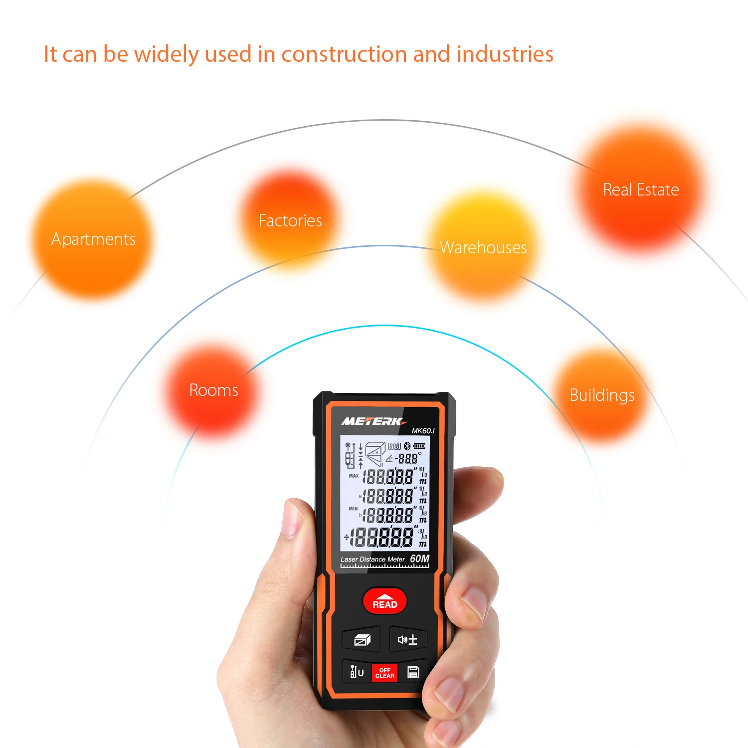Хотите иметь профессиональный лазерный дальномер с высокой точностью? Попробуйте наш лазерный дальномер Meterk. Он может измерять расстояние, площадь и объем. Он также используется для непрямого измерения с помощью теоремы Пифагора. Простой в эксплуатации, точный в измерении, подходящий размер для вашей ладони, светильник для удобства переноски. Этот лазерный дальномер, как превосходный измерительный инструмент может быть широко использован в строительстве и промышленности, особенно в больших областях, таких как комнаты, квартиры, здания, дома, фабрики, склады и т. Д.