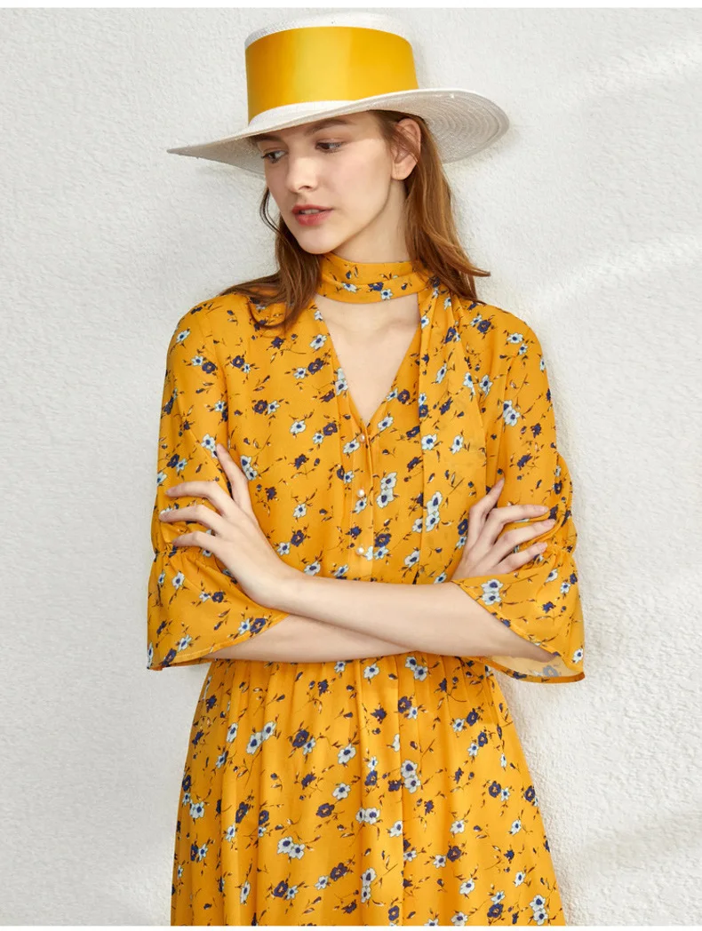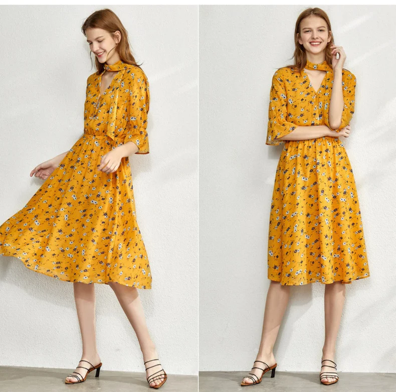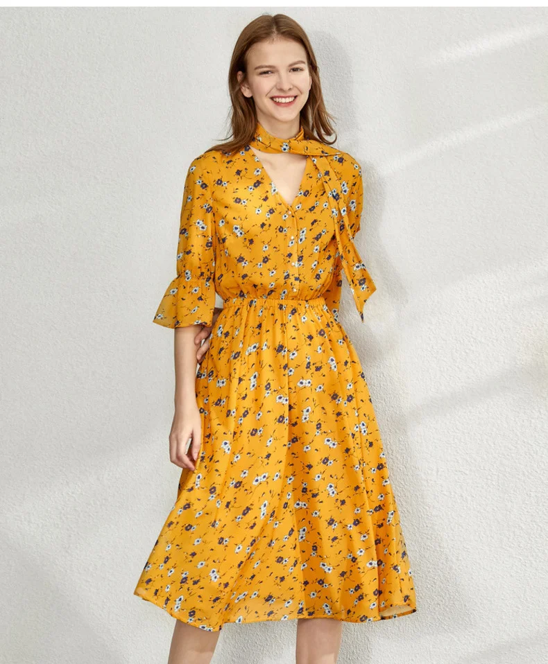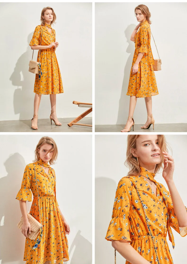 Платье Женский 2021 новый чистый цвет простой v образный вырез с завязкой на талии