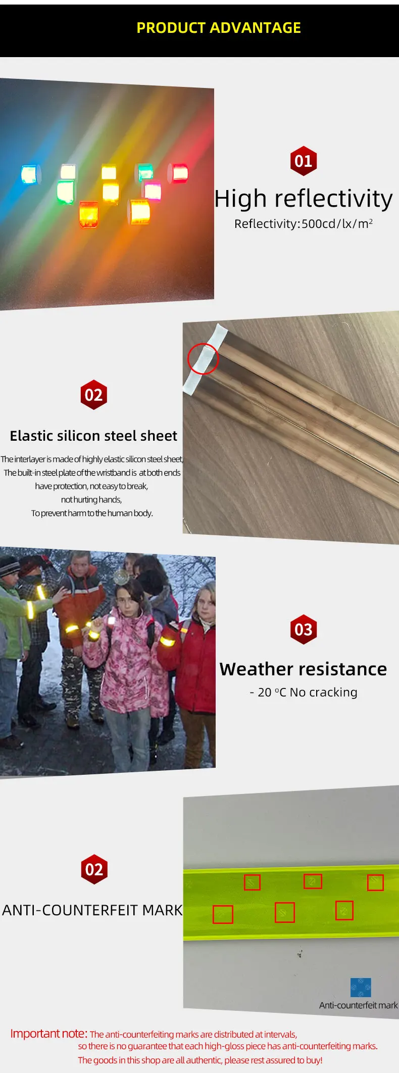 1 шт./лот 32 см MELITE 500 светоотражающий браслет со свечами, браслеты-пощечинки для езды, безопасная видимость