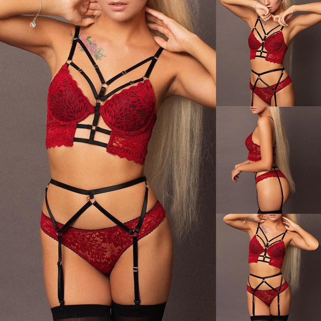 Новый женский сексуальный комплект нижнего белья размера плюс беспроводной бюстгальтер нижнее белье с подвязкой M-3XL