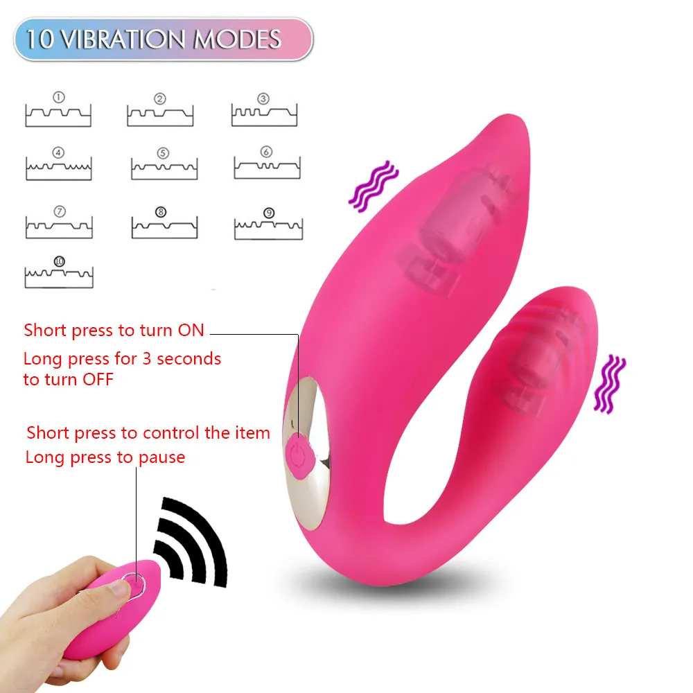 10 скоростей двойная головка Пара Вибратор U форма массажер точки G, Стимулятор клитора, беспроводной пульт дистанционного управления для взрослых Секс игрушки для женщин