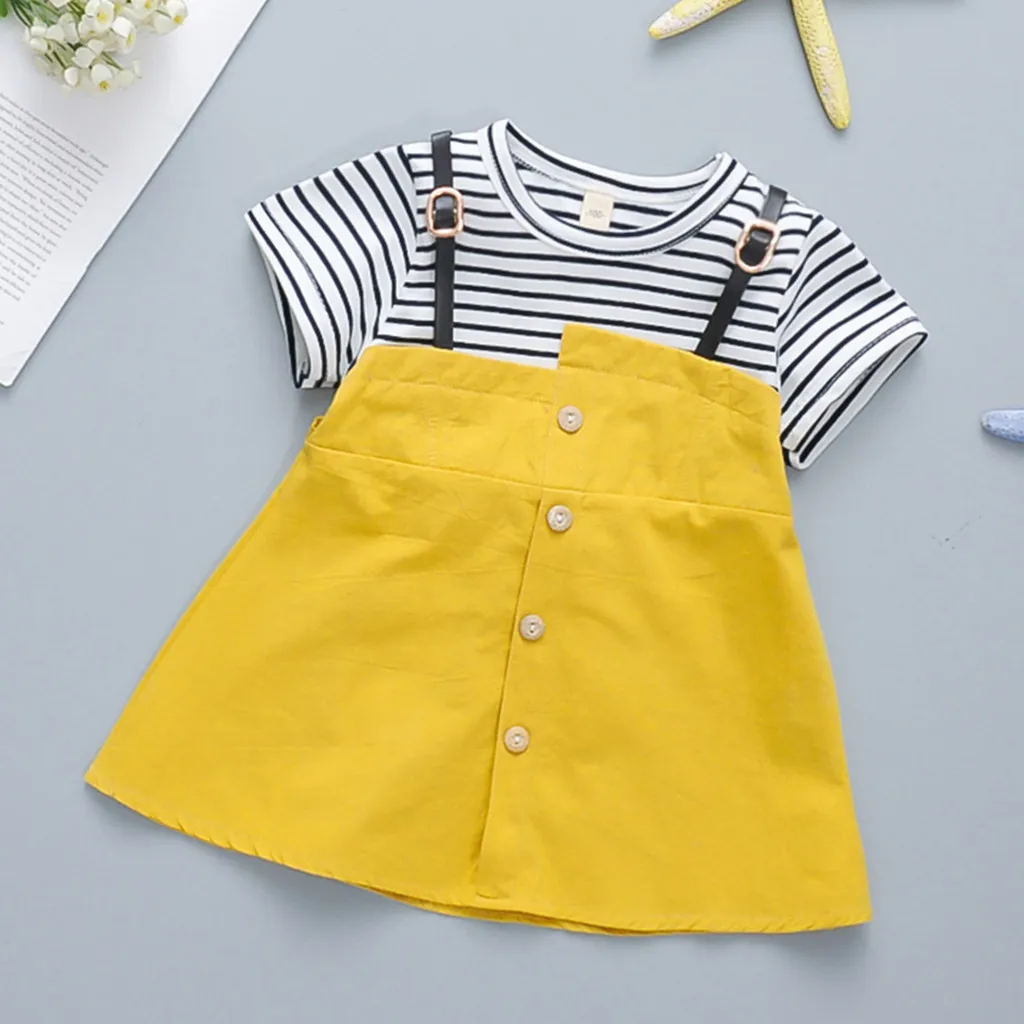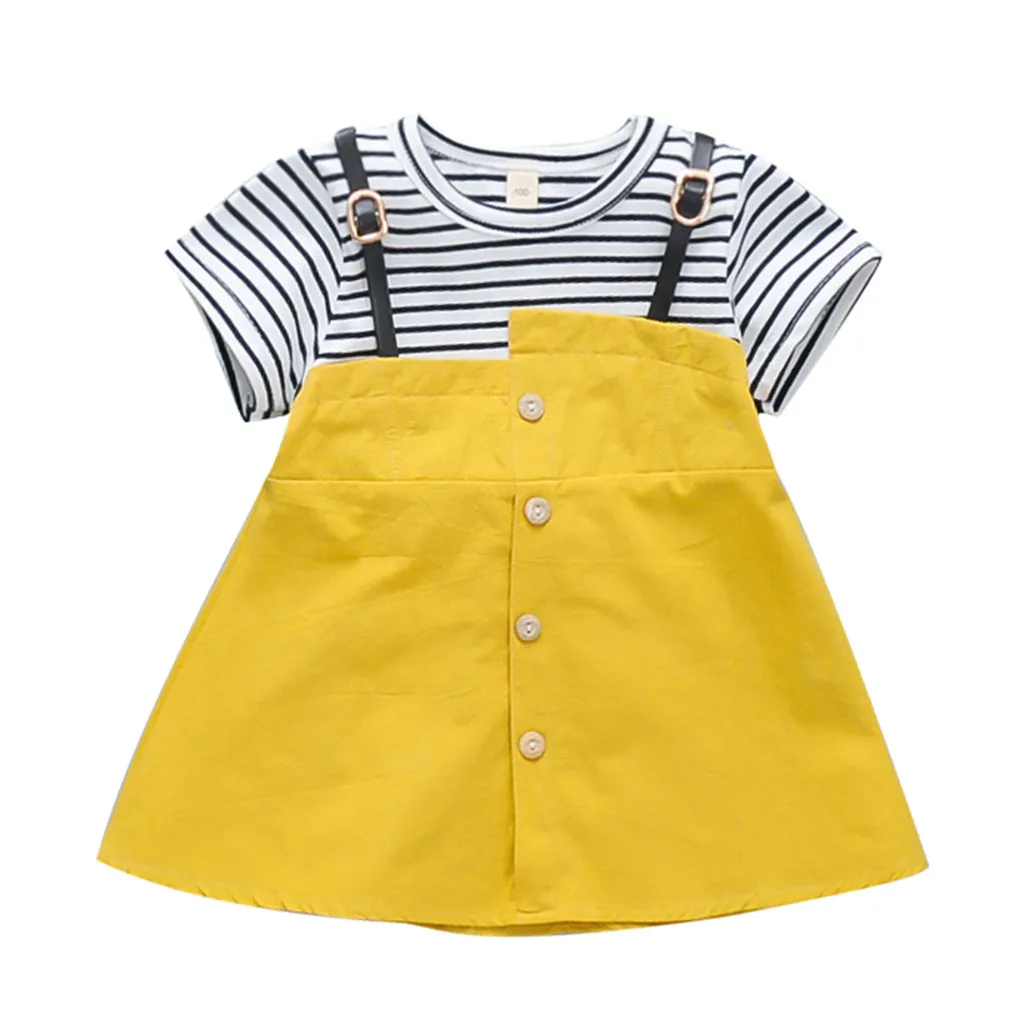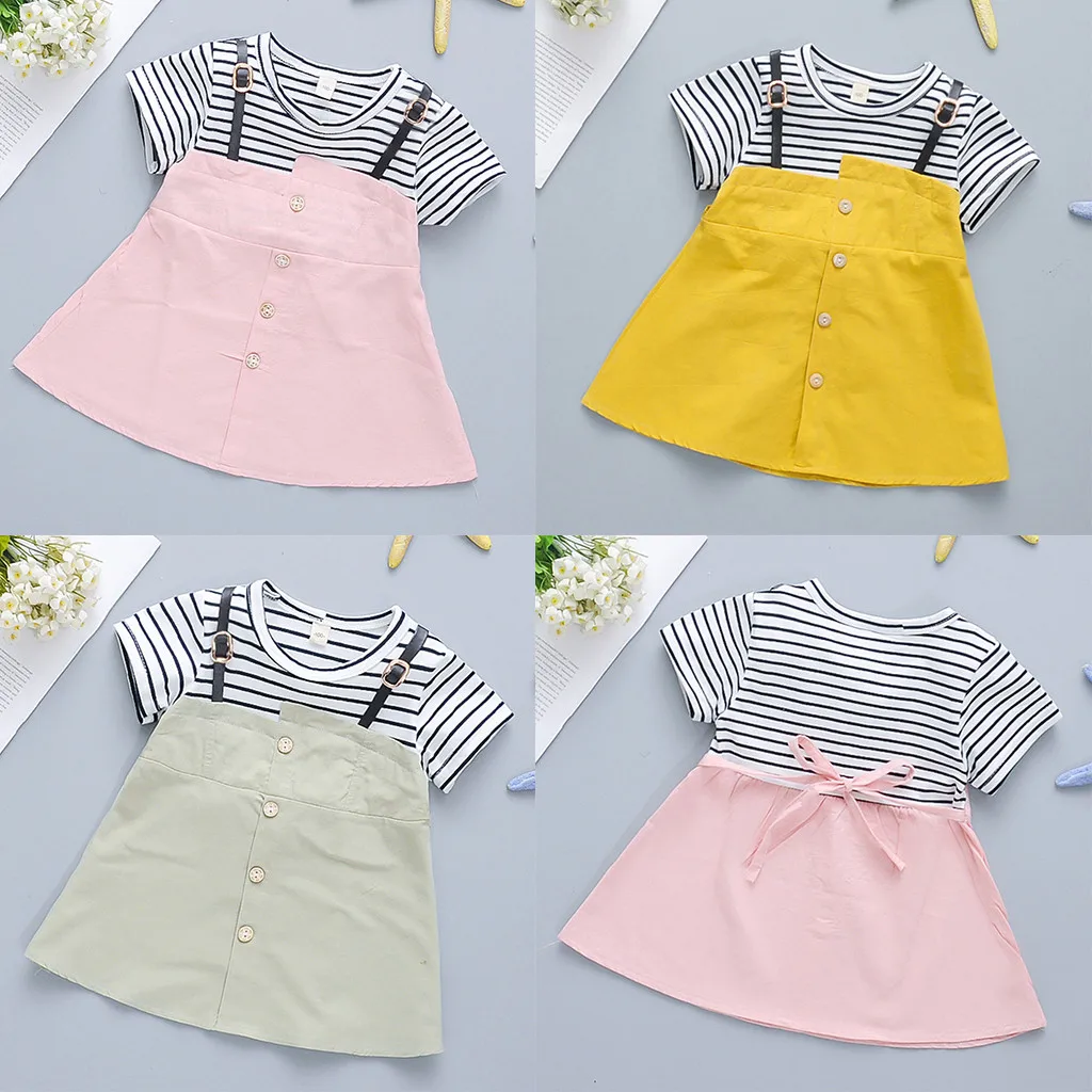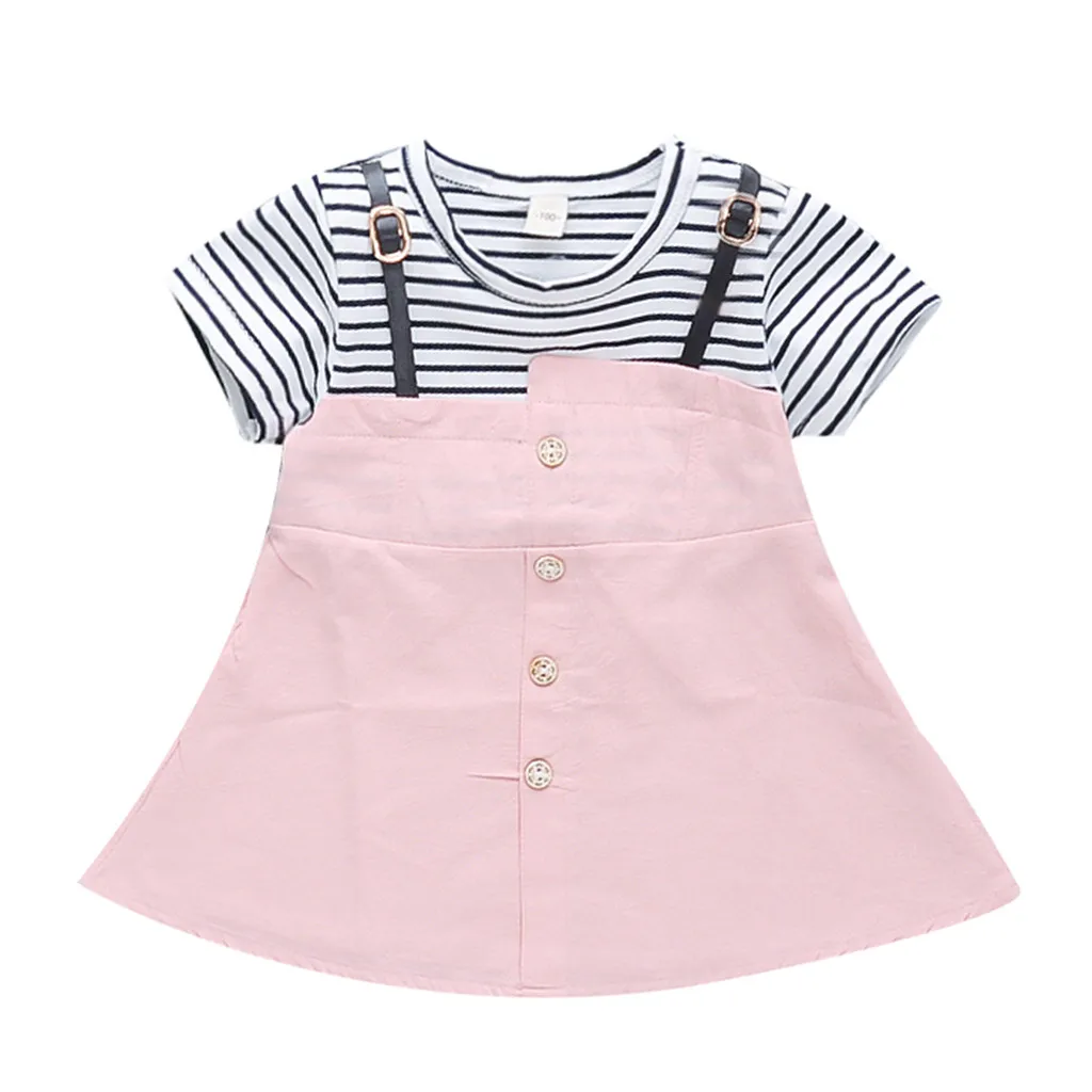 Toddler Baby Kids Girls Cute Striped Strap Patchwork Dress Casual Clothes
