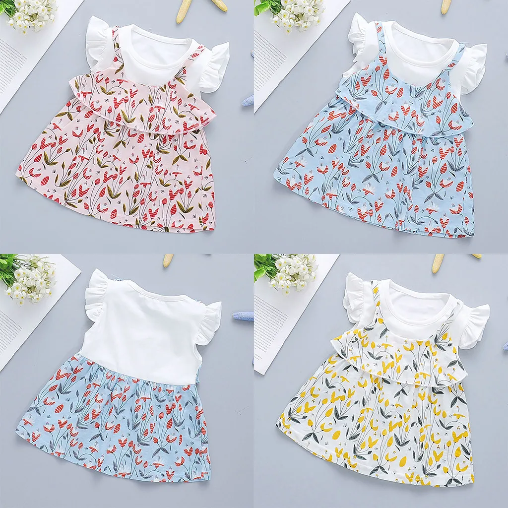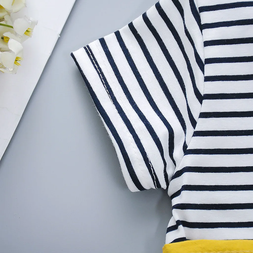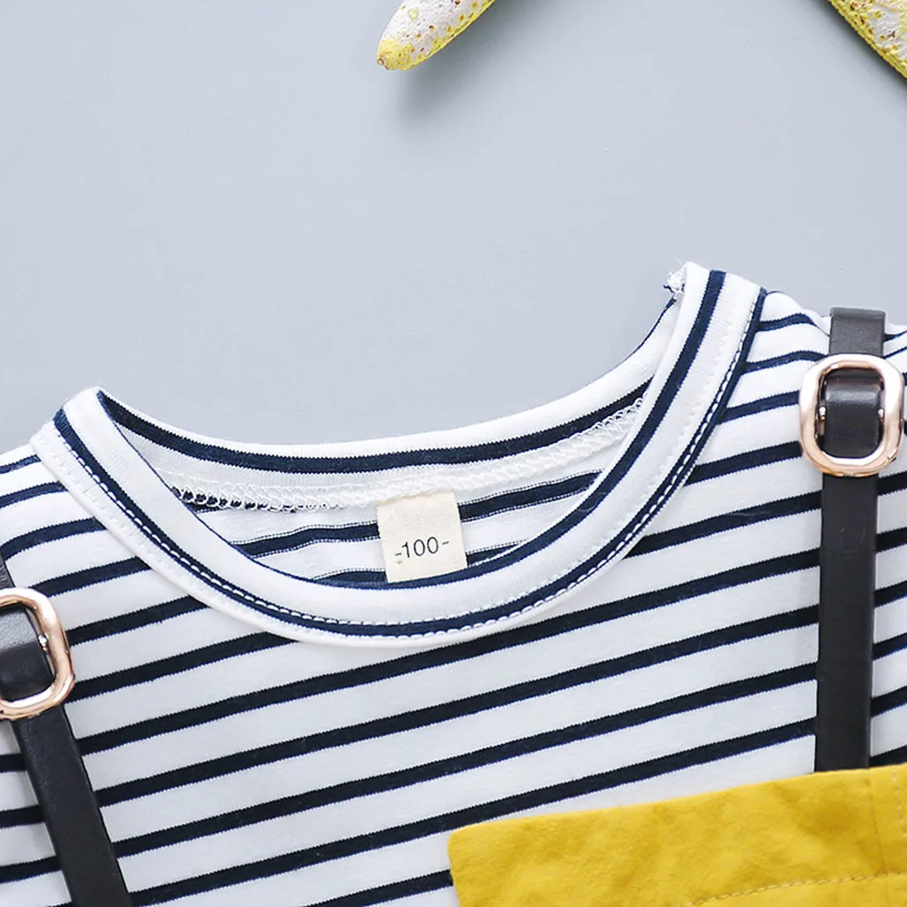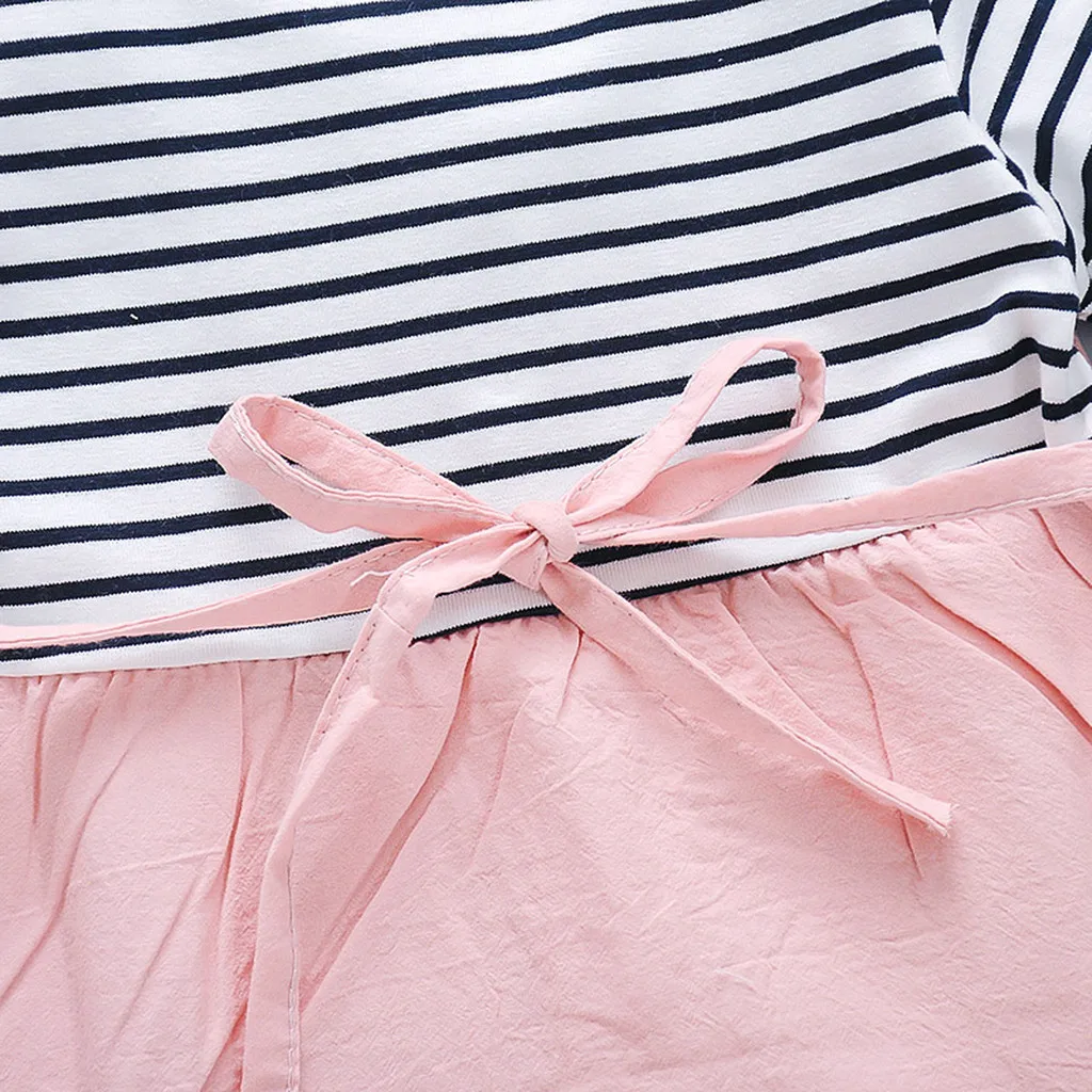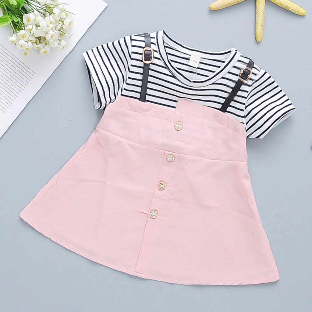 Toddler Baby Kids Girls Cute Striped Strap Patchwork Dress Casual Clothes