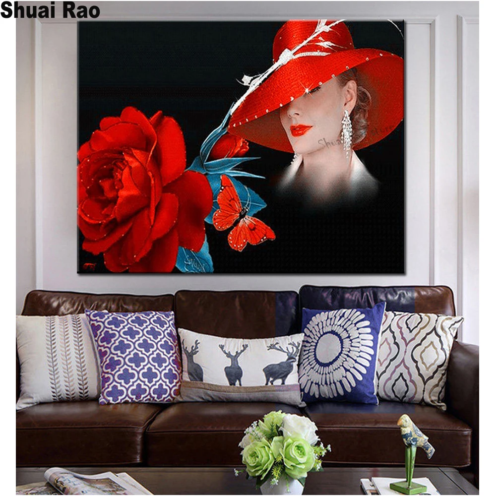 Алмазная Вышивка Полный дисплей квадратная Круглая Мозаика романтическая красная роза шляпа красота Стразы 5d diy алмазная живопись распродажа домашний декор