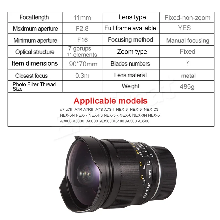 Особенности: 1. Дизайн для Sony E-mount для Leica L-Mount для Nikon Z mount камер. Полное покрытие датчика кадра с экстремальным ультра-широким углом обзора 180 градусов на полнокадровых камерах. 2. Изготовлен из 11 стеклянных элементов в 7 групп с диапазоном диафрагмы f2.8-F16. Для эффективного улучшения разложения изображения края объектива Рыбий глаз, мы разработали TTArtisanM11mmF2.8 в 7 групп из 11 штук. Даже когда значение диафрагмы F2.8, оно может отвечать высоким требованиям качества изображения профессиональных пользователей для фотографий и видео. 3. Увеличивает передачу и уменьшает внутренние отражения. Объектив рыбий глаз 11mmF2.8 имеет очень большую глубину поля для ручного использования линз. Преувеличенные изображения и передача сверхреальной информации могут открыть новое вдохновение для спортивной фотографии и ландшафтной фотографии. 4. Какое минимальное расстояние фокусировки только 6,7 дюйм (ов). Лезвия диафрагмы: 7. 5. Несколько латунных компонентов, которые повышают долговечность линз. 6. Алюминиевый корпус, анодированный дизайн окраски, более прочный. Параметры: Тип линз: ультраширокоугольный объектив рыбий глаз TTArtisan 11 мм F2.8 Цвет: черный Совместимое Крепление камеры для Sony E-Mount для Leica L-mount для Nikon Z Mount Camera s Тип фокусировки: manual_only Размеры изделия: 90*70 мм Вес изделия: 485 г Тип объектива: фиксированный-без Зума Максимальная диафрагма: F2.8 Максимальное Фокусное расстояние: 11 мм Минимальная диафрагма: F16 Минимальное фокусное расстояние: 11 мм Размер резьбы фильтра для фото:/ Количество лопастей диафрагмы: 7 Количество элементов: 11 Количество групп: 7 Зум Тип: фиксированный Полная Рамка в наличии: Да Совместимость: 1. Для Sony A7 A7II A7R A7RII A7S A7SII NEX-3, NEX-5, NEX-C3, NEX-5N, NEX-7, NEX-F3, NEX-5R, NEX-6, NEX-3N, NEX-5T, a3000, a5000, a6000, a3500, a5100 a6300, a6500 камеры 2. Для Leica L Mount камер, таких как Leica T Leica TL Leica TL2 Leica CL 3. Для камер Nikon Z, таких как Z6 Z7 Посылка Содержание: 1 * TTArtisan11mmF2.8 1 * Передняя крышка объектива 1 * Задняя крышка объектива 1 * упаковочная коробка 1 * Руководство пользователя