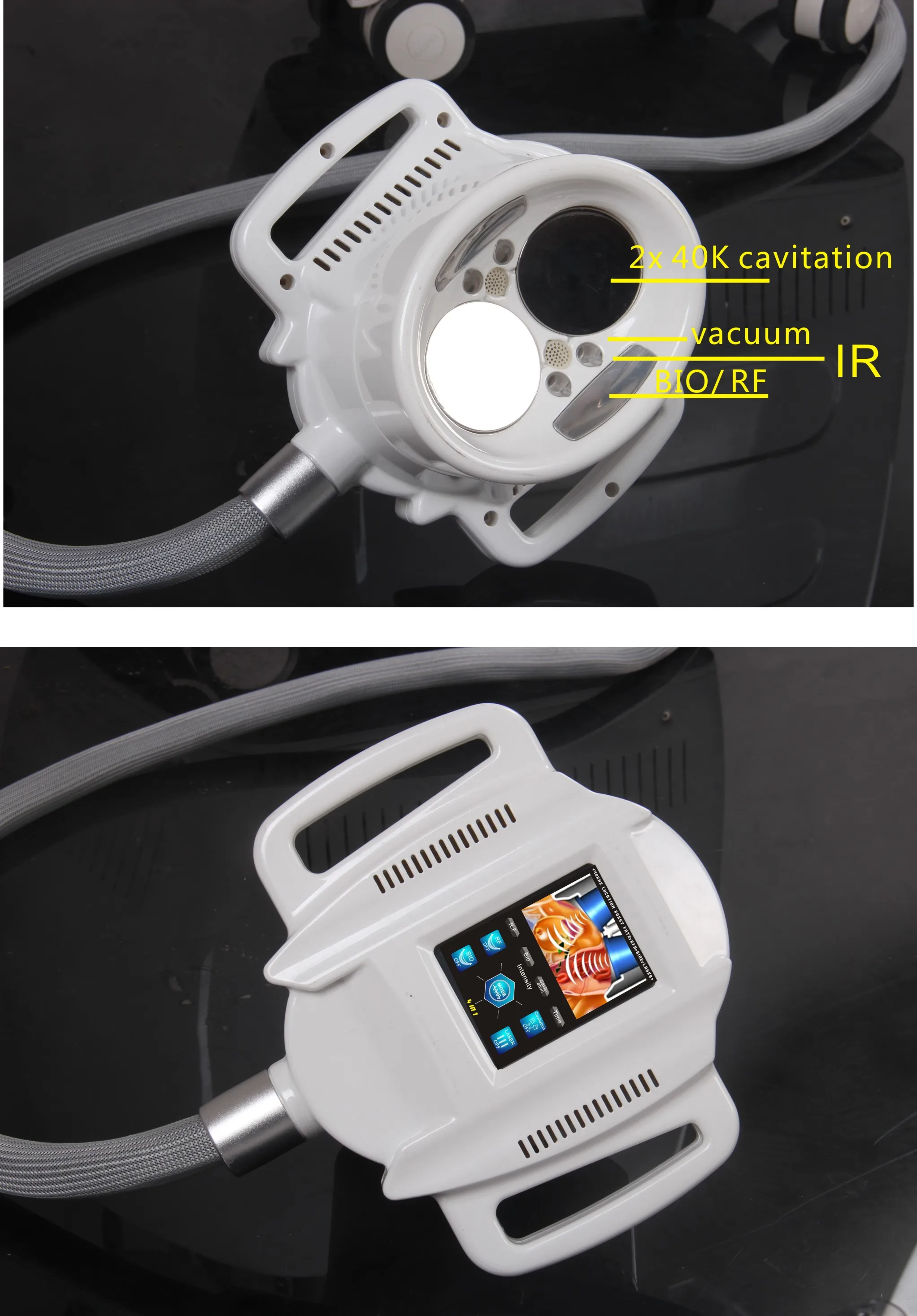 Нагрев (инфракрасная + радиочастотная энергия) А. Улучшает кровообращение и увеличивает диссоциацию кислорода от оксигемоглобина B. Способствует активности фибробласта C. Увеличивает метаболизм жировых клеток D. Улучшает текстуру кожи 40 кГц ультразвуковая кавитация для сжигания жира Ультразвуковая кавитация в сочетании с вакуумным роликом RF; Новая и инновационная обработка для получения тонкого тела путем усиления коллагена, сжигания жира и сжатия кожи. Липо-кавитация или ультра-кавитация может быть инновационная процедура дробления мира, в которой люди могут выйти на новый уровень, предлагая неоседлые результаты похудения и способность выглядеть моложе в течение нескольких недель. Эта последняя революция, призванная дать людям отличные результаты без операции, была чрезвычайно успешной. Аксессуары 1.V10 Velashape ручка (2x40KHZ ультразвуковая кавитация + вакуум + RF + лазер + БИО) 2.V9 большая ручка velashape (автоматический вакуумный ролик + RF + лазер + 3 фотона) 3. Ручка V9 middle velashape (автоматический вакуумный ролик + RF + лазер) 4. Небольшой вакуумный инфракрасный ВЧ-ручка (для лифтинга лица и шеи) 5. Вакуумный RF синий светильник для глаз (для удаления морщин глаз) Ультразвуковая кавитационная ручка 6,40 кГц 7. 8 большой лазерной тонкие прокладки 8. Криолиполиз наконечник для опции