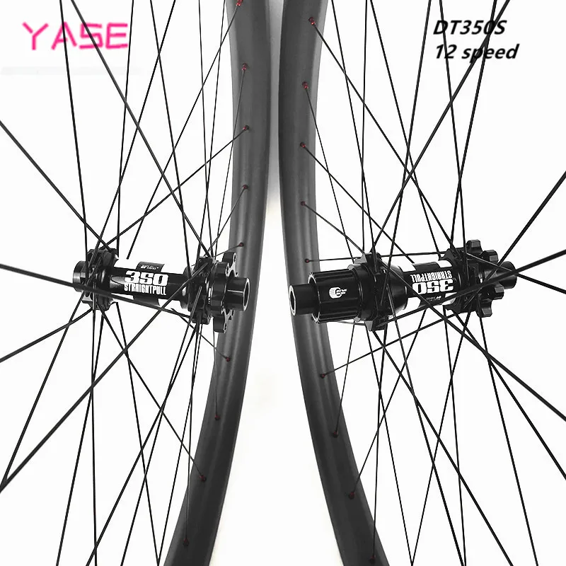 YASE Новинка, 12 Скоростей, 27,5 er, углеродная колесная установка, 30x30 мм, бескамерная, mtb велосипедная колесная система, thru axle/boost HUB DT350S, Углеродные колеса, дисковый тормоз