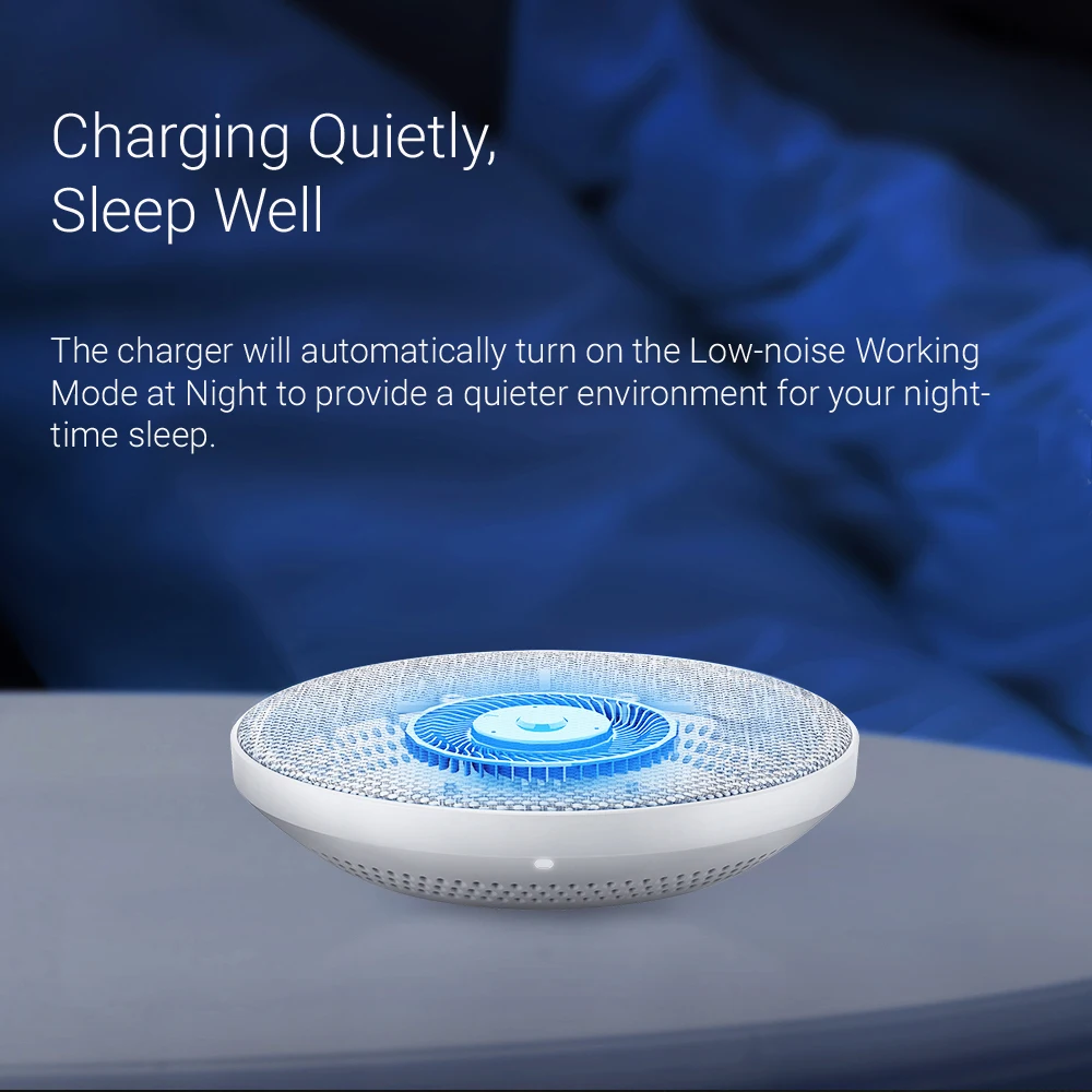 The charger will automatically turn on the Low-noise Working Mode at Night to provide a quieter environment for your night-time sleep.