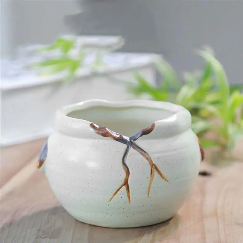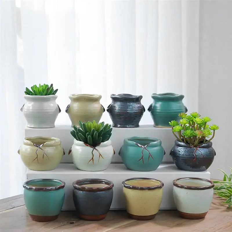 Vintage ceramic pot in stylish design is perfect for adding a modern touch and some natural green to your interior. Flat mouth and crack grain pattern design, durable and practical. A good helper for household decoration. Ideal container for small grass, flower, succulent, etc.4 x ceramic flowerpot