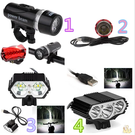 Waterproof 5 LED Lamp Bike Bicycle Front Head Light + Rear Safety Flashlight Set