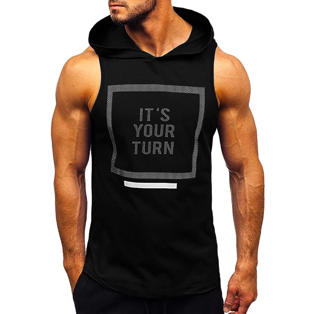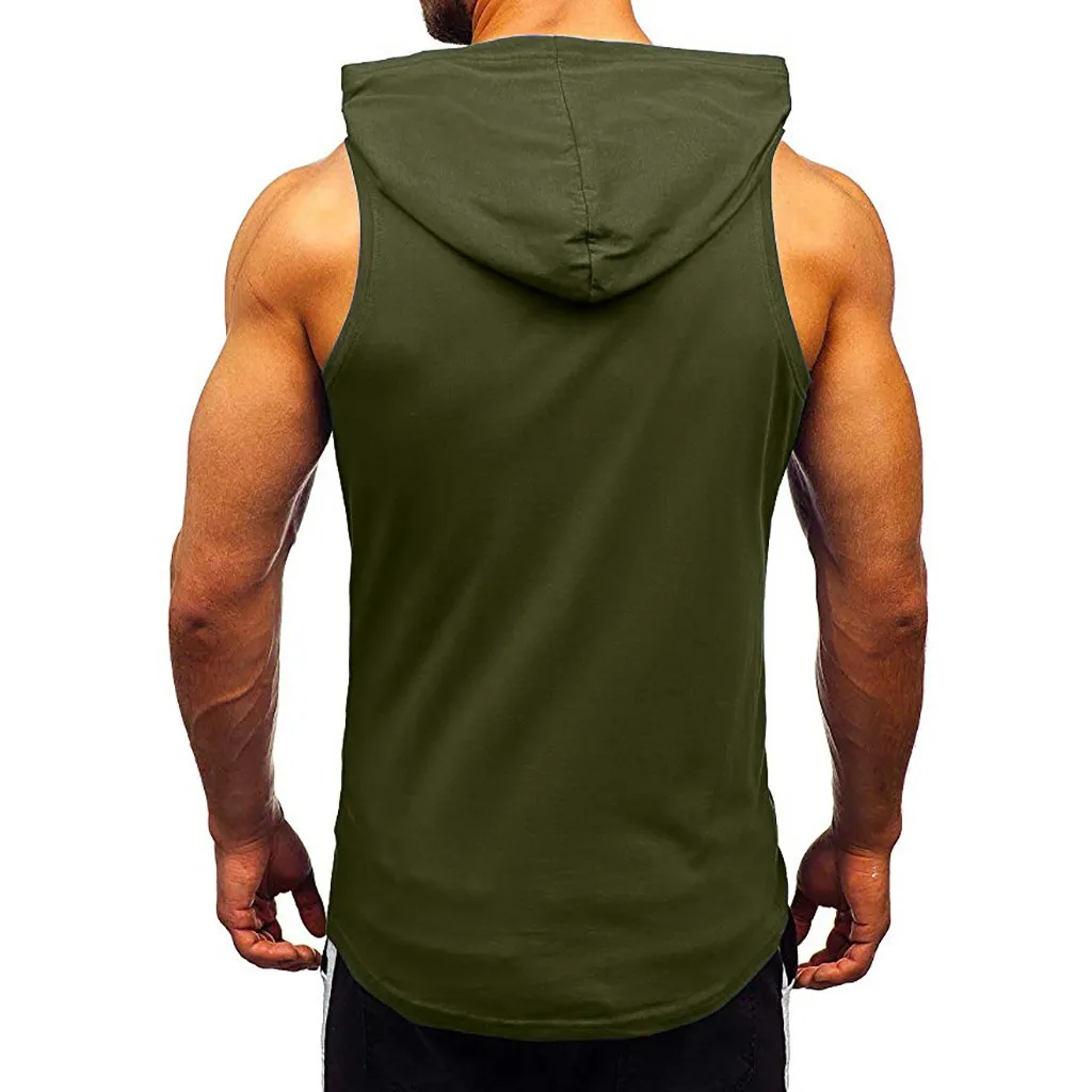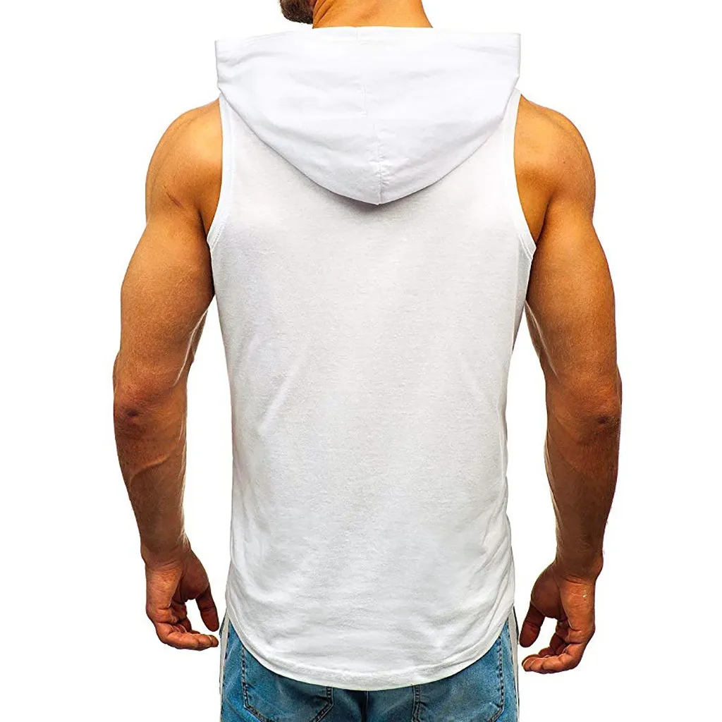 Мужские обтягивающие топы без рукавов с капюшоном для фитнеса и бодибилдинга