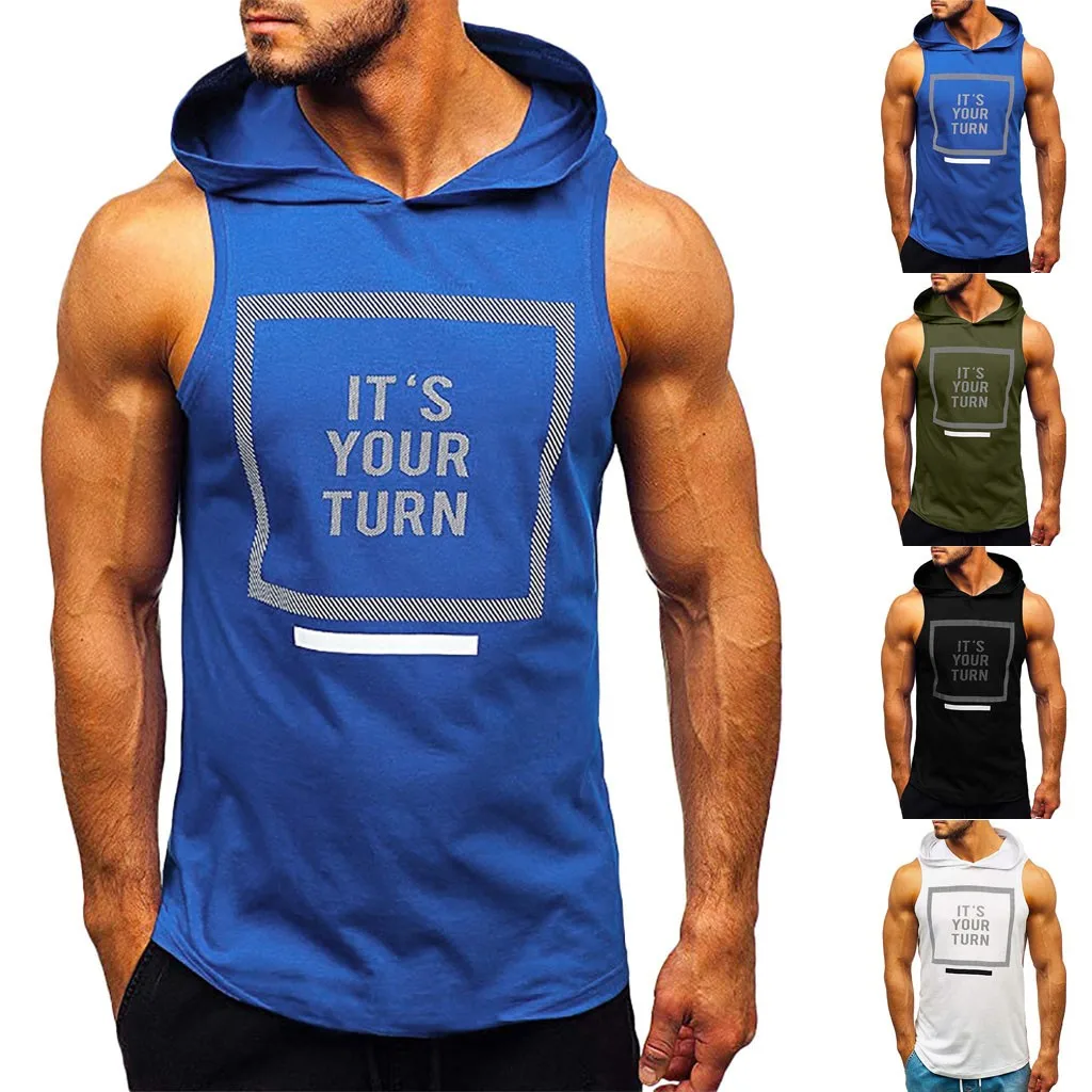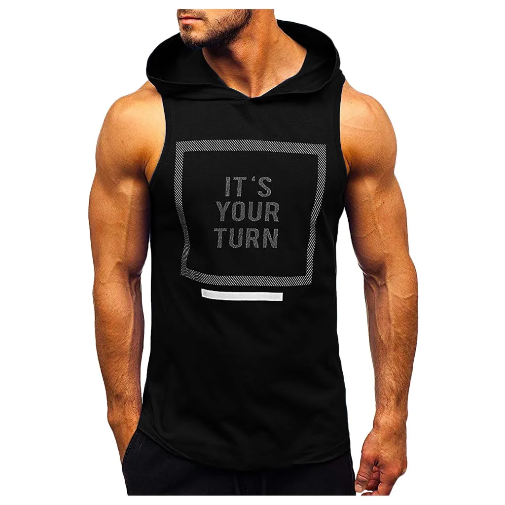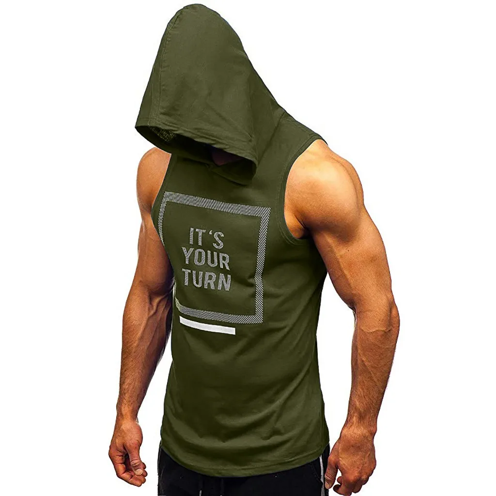 Мужские обтягивающие топы без рукавов с капюшоном для фитнеса и бодибилдинга