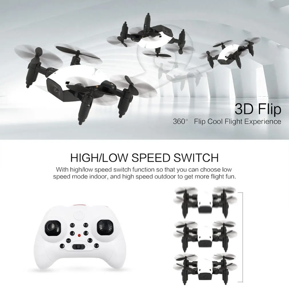 Особенности: складной: небольшой размер и вес на светильник, он может быть складной и поместиться в ладони, легко носить с собой. Безголовый режим: в безголовом режиме Дрон будет лететь в направлении джойстика, независимо от головы дрона. Возврат в один ключ: этот самолет восстанавливает точное место, с которого он снимал. Где бы он ни летал, нажмите на ботинок, чтобы вернуть его обратно домой. 3D флип: Просто нажмите кнопку 3D rolling на передатчике, и вы получите 360 градусов флип для идеального действия и замечательной производительности. Переключатель скорости H/L: различные скорости s приносят различный опыт полета к вам, вы можете выбрать низкоскоростной режим в помещении, высокоскоростной Открытый. Описание: Этот складной мини-Дрон S9 очень милый. Просто посмотрите, вам понравится. Это Многофункциональность и красивый внешний вид позволяют вам иметь лучший опыт полета. Технические характеристики: Название товара: S9 Квадрокоптер с дистанционным управлением Цвет: синий/белый/желтый/красный дополнительного пульта дистанционного управления: 2,4 ГГц 4CH Встроенный гироскоп: 6-осевой гироскоп Основной материал: Пластик функции: полет в сторону, поворот влево/вправо, вверх/вниз, вперед/назад, 3D флип, возврат одной клавиши, Безголовый режим, переключатель скорости H/L. Дистанция дистанционного управления: около 50 м Батарея: 3,7 в 200 мАч lipo батарея (встроенный) Время полета: около 7 минут Время зарядки: около 40 минут пульт дистанционного управления Батарея: 3 * AAA (не входит в комплект) вес продукта: около 26 г Размер продукта: 6,2*4,9*3 см (в сложенном виде) 9*8*3 см (разворачивается) посылка информация: посылка Размер: 17,8*15,5*6 см/7,0*6,1*2,36 дюймов посылка Вес: 198 г/6,9 унций Общая коробка посылка Примечание: возможны некоторые отклонения из-за ручного измерения. Посылка: 1 * RC Квадрокоптер 1 * пульт дистанционного управления 1 * USB зарядное устройство 4 * запасной пропеллер 1 * отвертка 2 * защитное кольцо 1 * Руководство пользователя