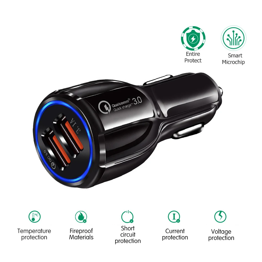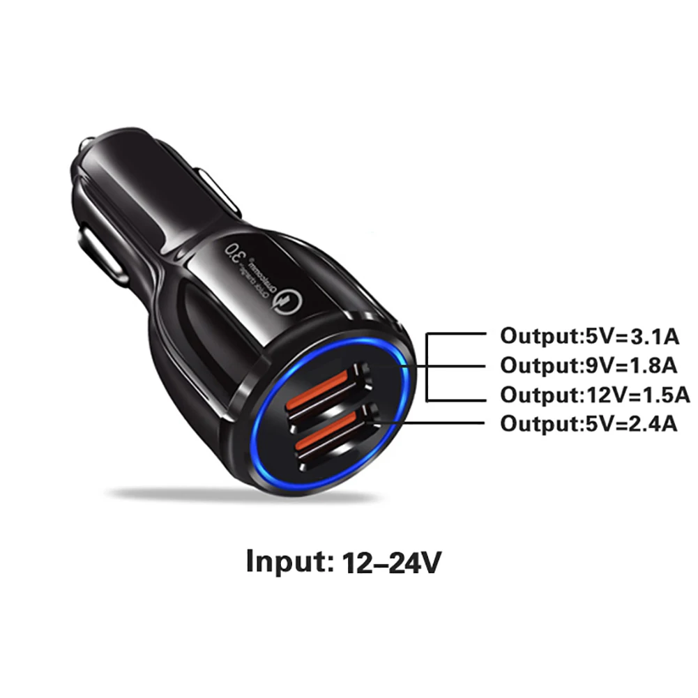 1. Название продукта: двойное автомобильное зарядное устройство USB (быстрая зарядка QC3.0)