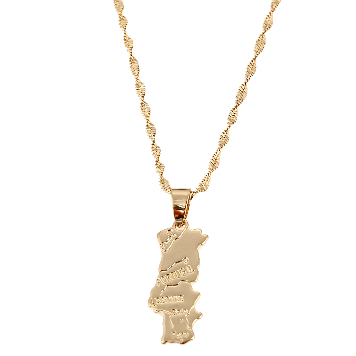 Карта Португалии кулон ожерелье женщин золотой цвет португальский карта цепь ювелирные изделия