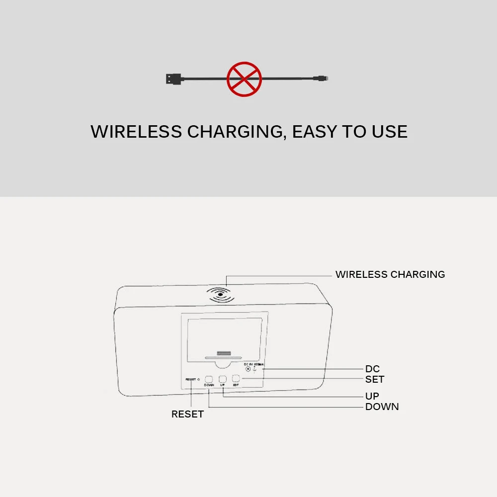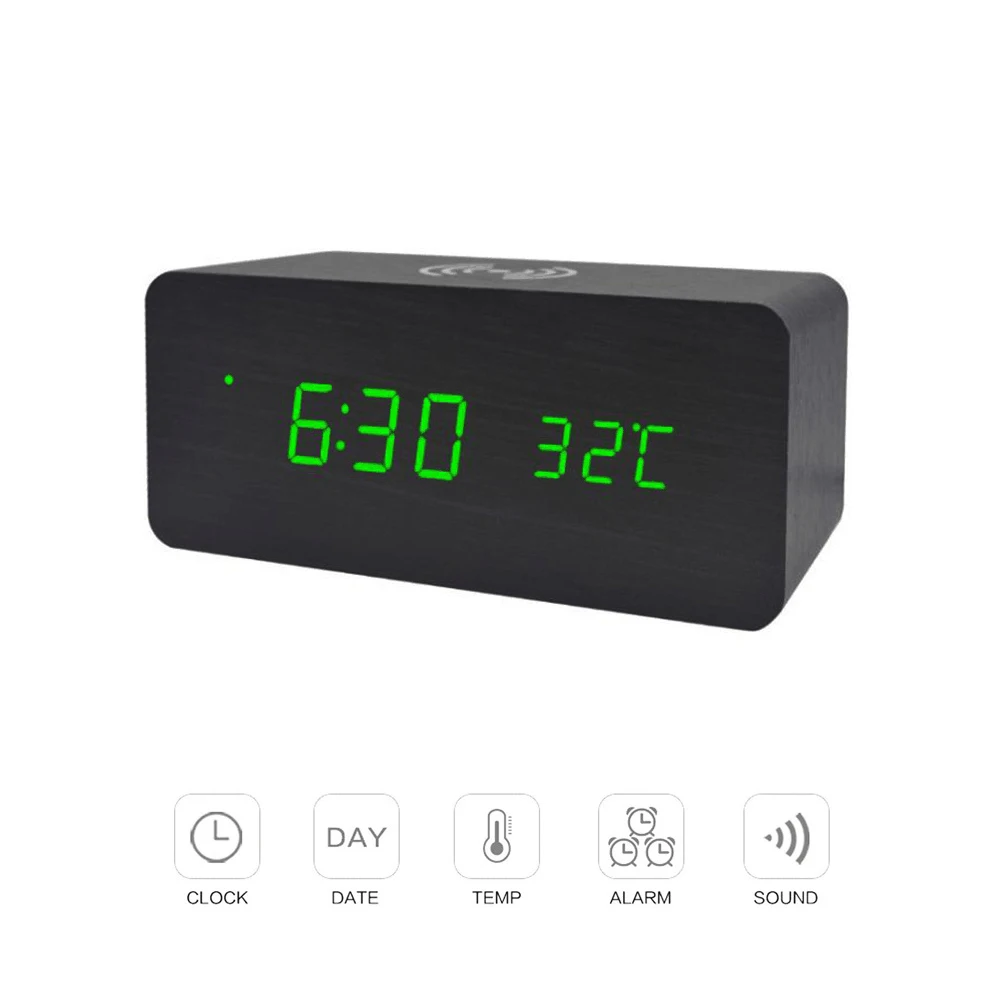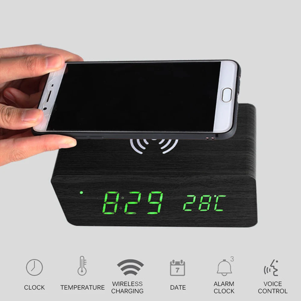 Деревянная сигнализация с функцией беспроводной зарядки может заряжать ваш телефон быстро и удобно.