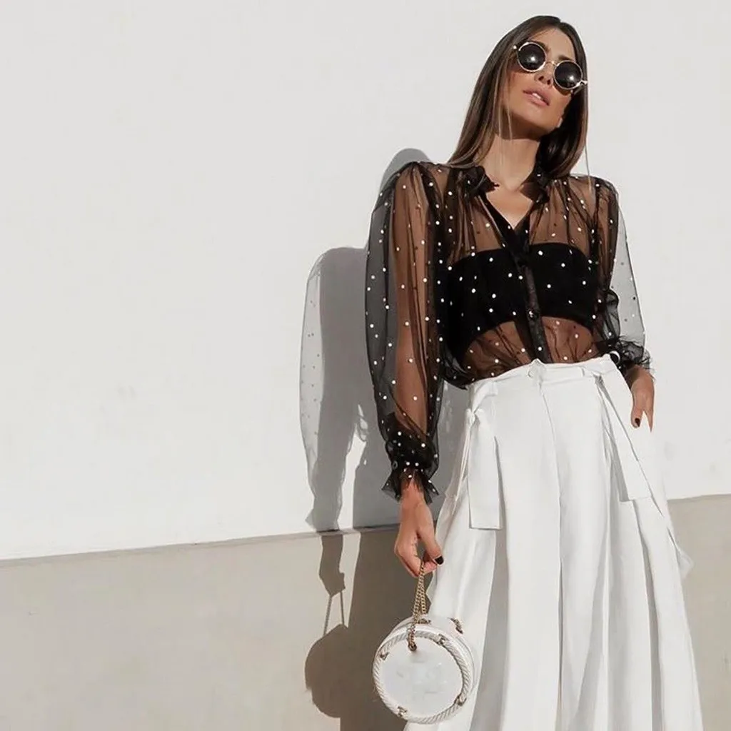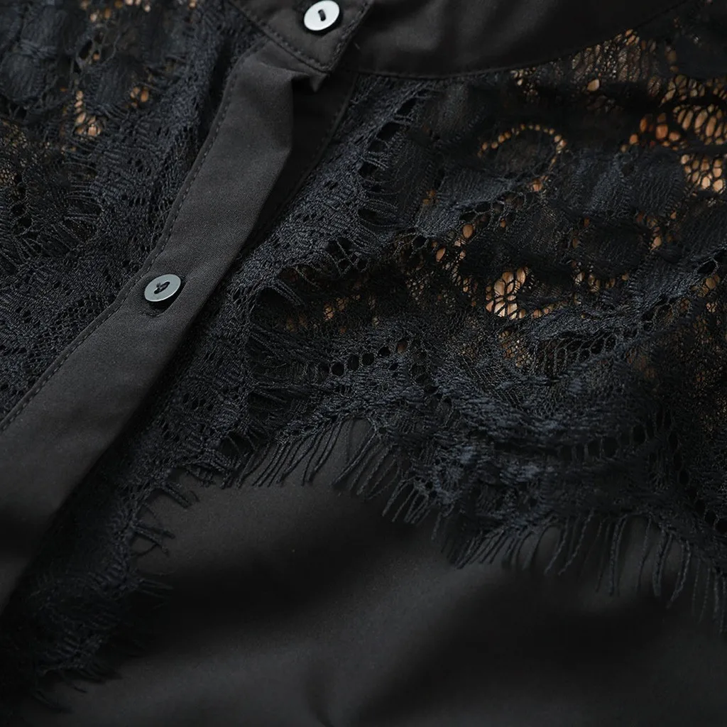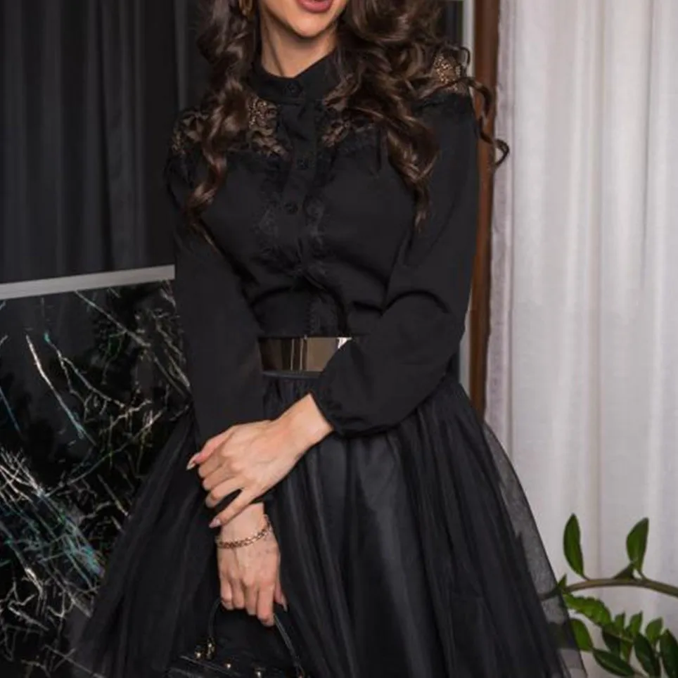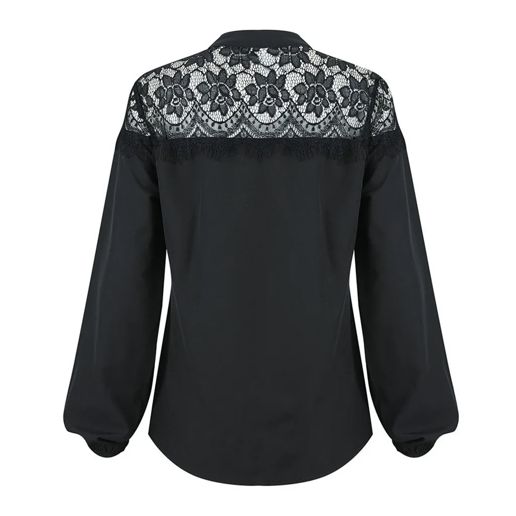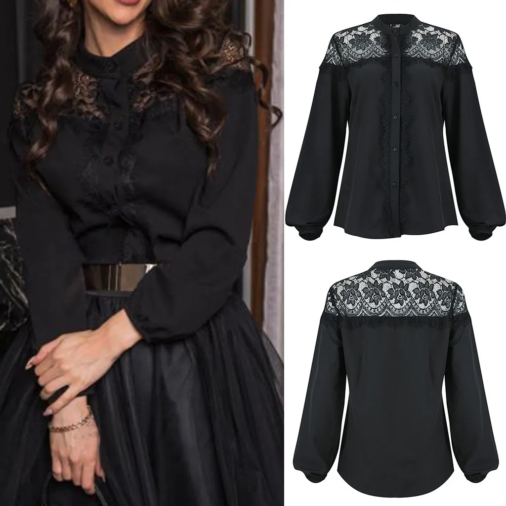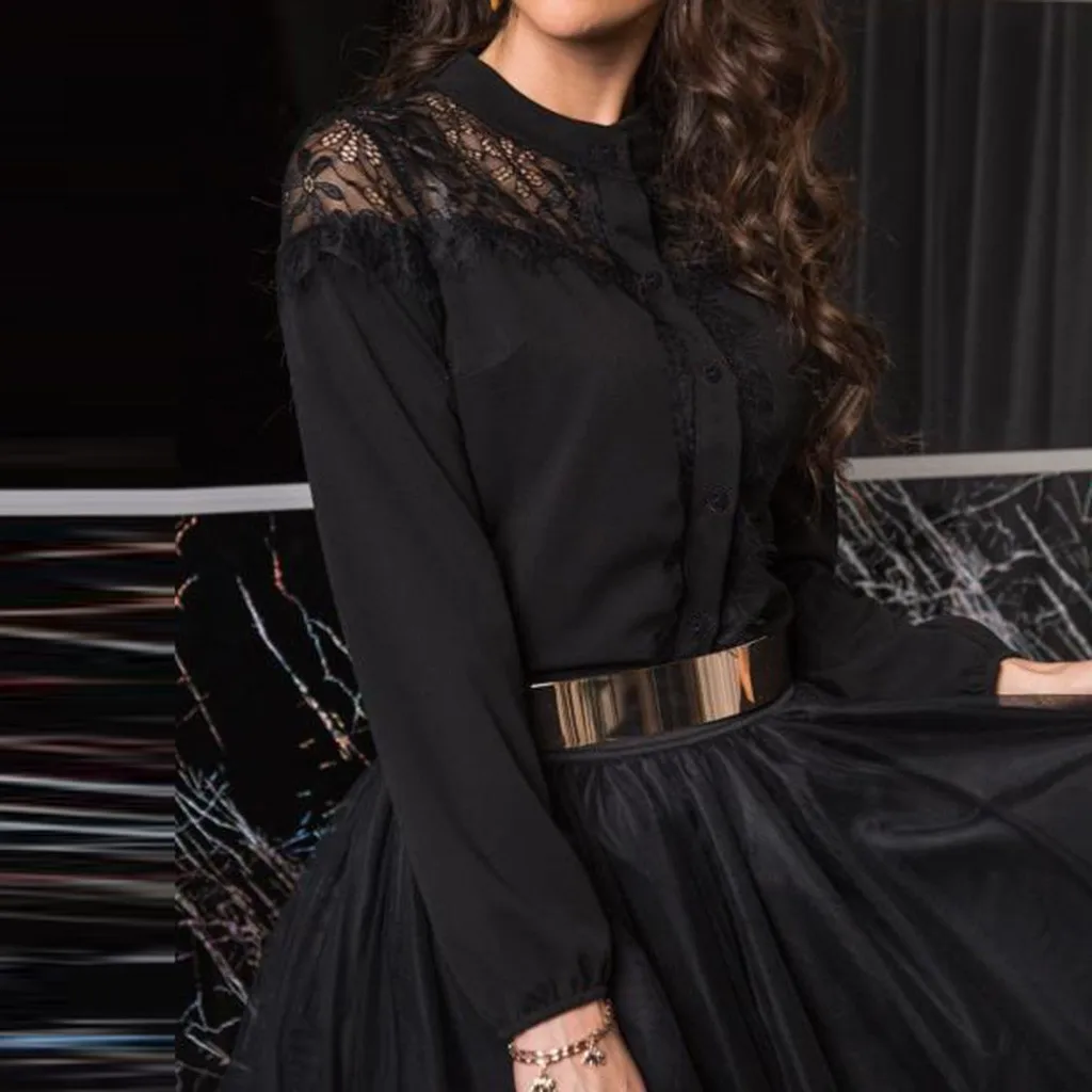 Для женщин Элегантная кружевная блузка с воротником-стойкой для весны и лета