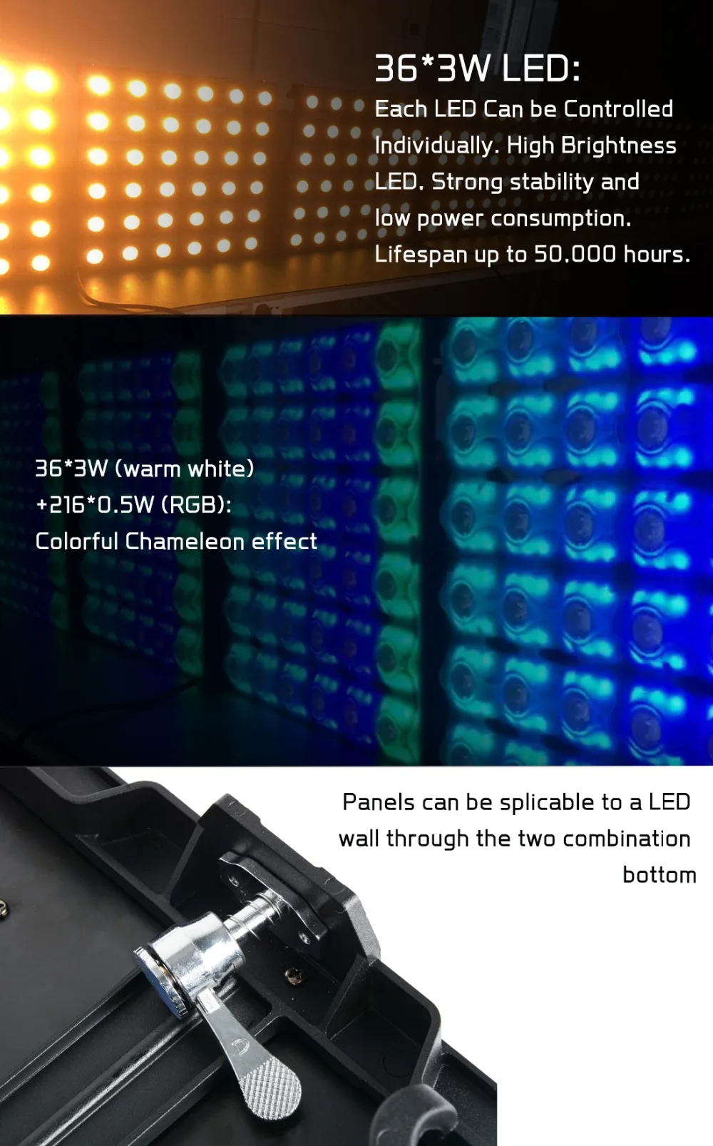 Матрица 36x3W представляет собой новый Янтарный RGBW Луч матричный свет. Мощность светового потока эффект похож на галогенную лампу. Эффективное Объектив Угол 4,5 °, а луч эффект является более прочным. Матрица 363 имеет пять Режимы канала (4/6/8/144/156CH). Каждый светодиод контролируются в индивидуальном порядке и при создании различных моделей. Она доступна для автономный режим с внутренним знаки и узорах с беговых эффектов со скоростью и шаг управления (2 в автоматическом режиме), DMX контроль или управление звуком (2 звуковых режимов простое). Это совпадает с цифровой преобразователь ЖК-дисплея с 4 кнопками управления. В PIXELPANEL предназначен ваши запросы даем профессиональные и безопасной Блокирующей системой сочетать Количество панелей, а также для профессионального программирования. Матрица 363 подходит для крупномасштабных концертов, телевизионных студий, театров, ночные клубы, бары, кафе, И т. д.