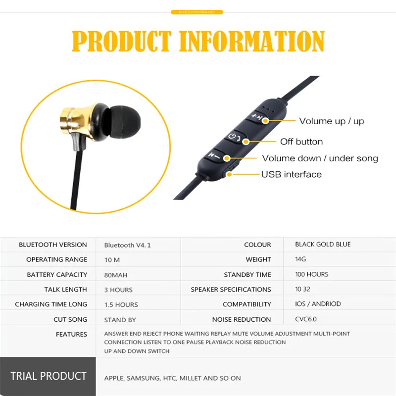 Стиль B: металлические спортивные Bluetooth наушники, наушники с защитой от пота, магнитные наушники, стерео Беспроводная гарнитура для мобильного телефона iPhone MP3 MP4