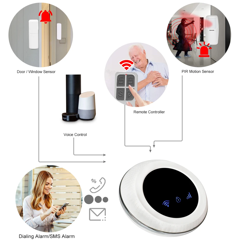 Умная Система сигнализации WiFi + GSM 433 МГц с функцией дистанционного управления APP Tuya, включая дистанционное управление, и т. Д.