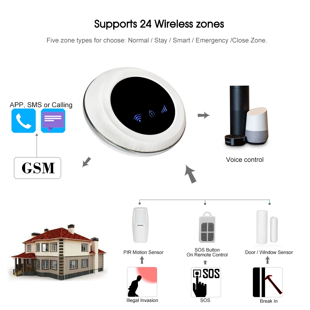 Поддерживает 24 беспроводных зоны.