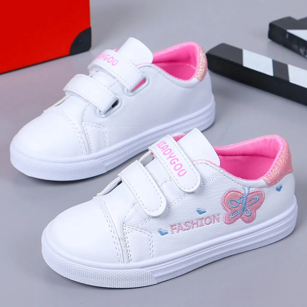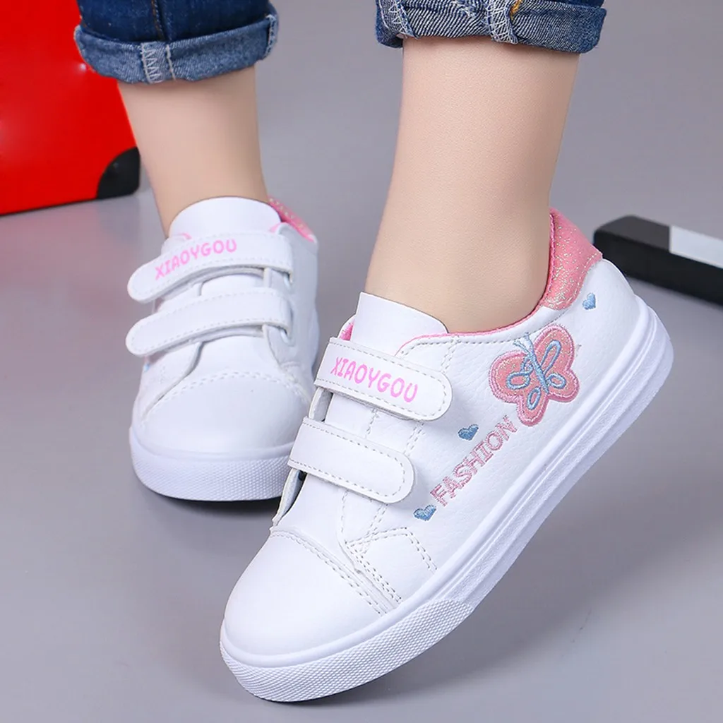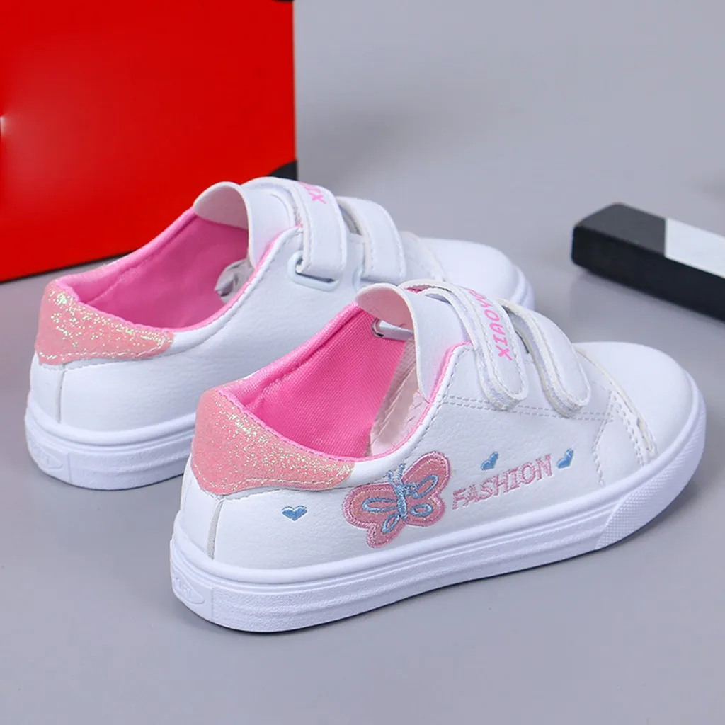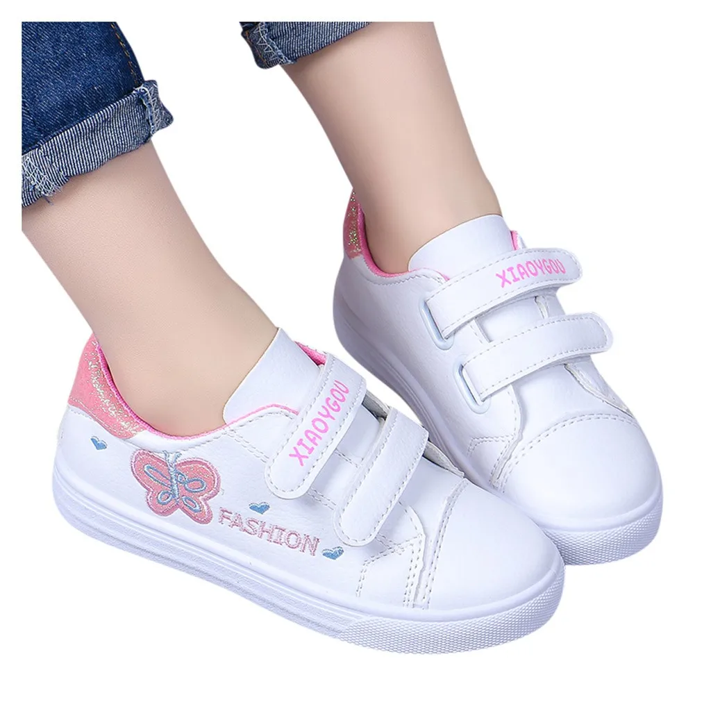 Детские кроссовки с бабочками и сердечками для маленьких девочек; повседневная обувь