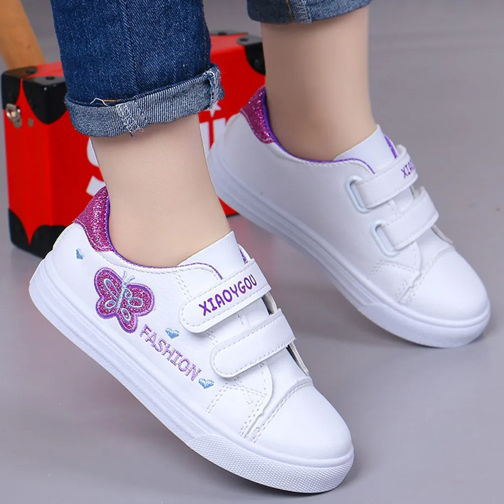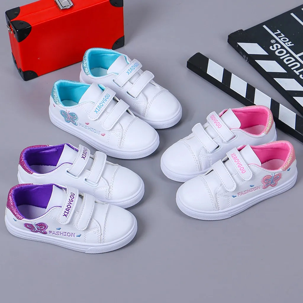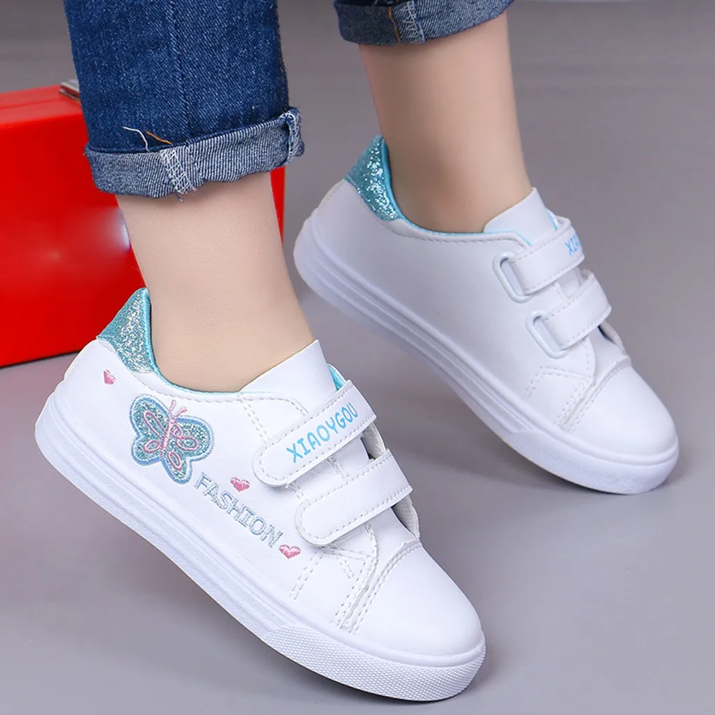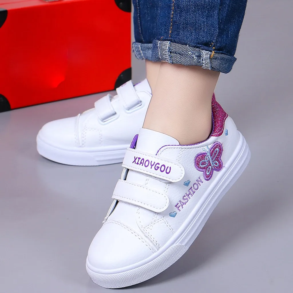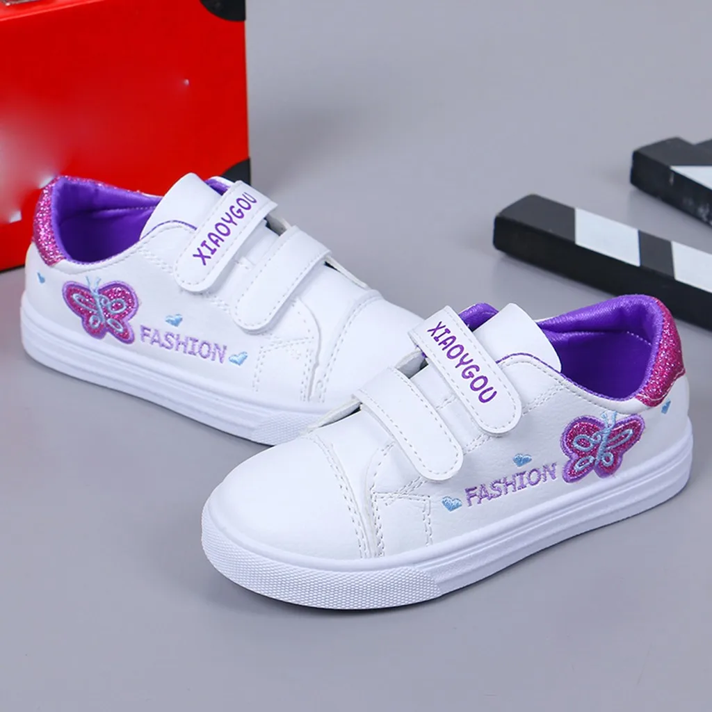 Детские кроссовки с бабочками и сердечками для маленьких девочек; повседневная обувь